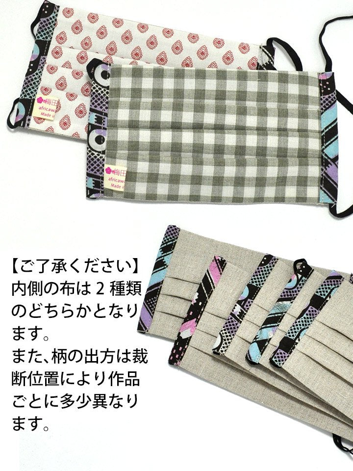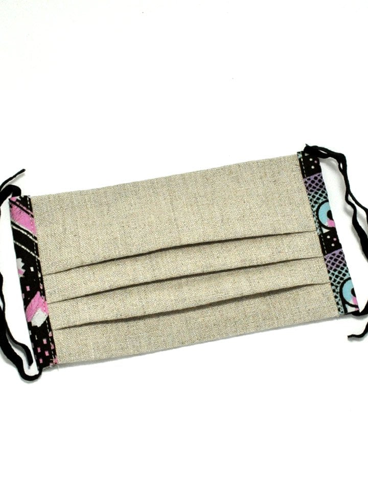 汚れにくくて丈夫、またサラッとして夏でも涼しい素材のリネンと、アフリカンプリントをアクセントにしてマスクを作りました。