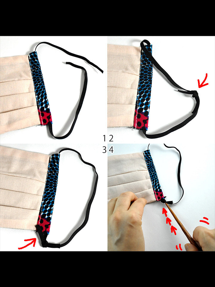 ★ゴムは結ばずに発送いたします。お好みの長さに固めに結び、目打ちや箸で結び目を端布の隙間に押し込んでご利用ください。