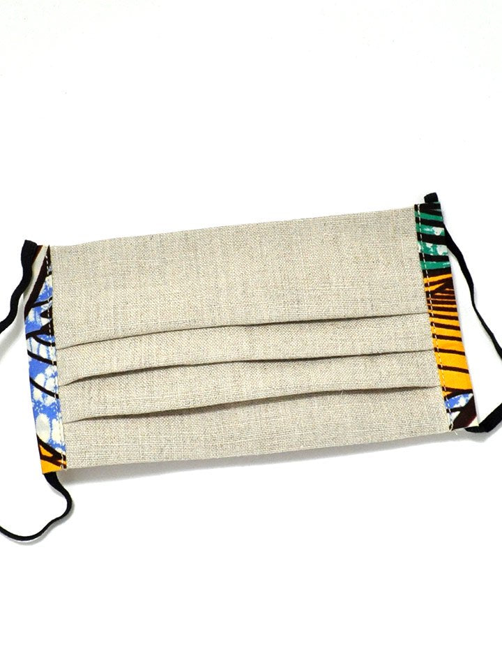 汚れにくくて丈夫、またサラッとして夏でも涼しい素材のリネンと、アフリカンプリントをアクセントにしてマスクを作りました。