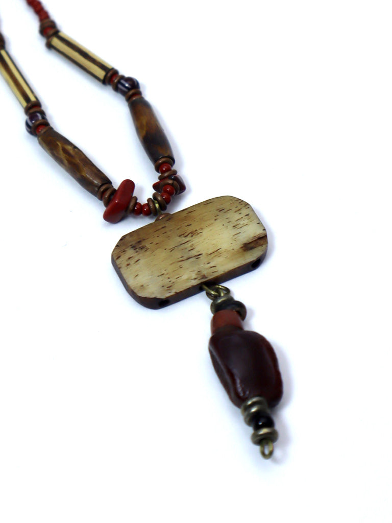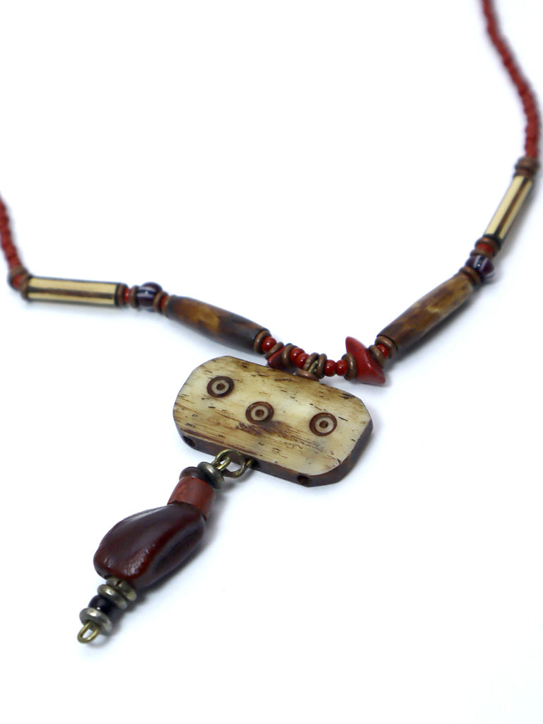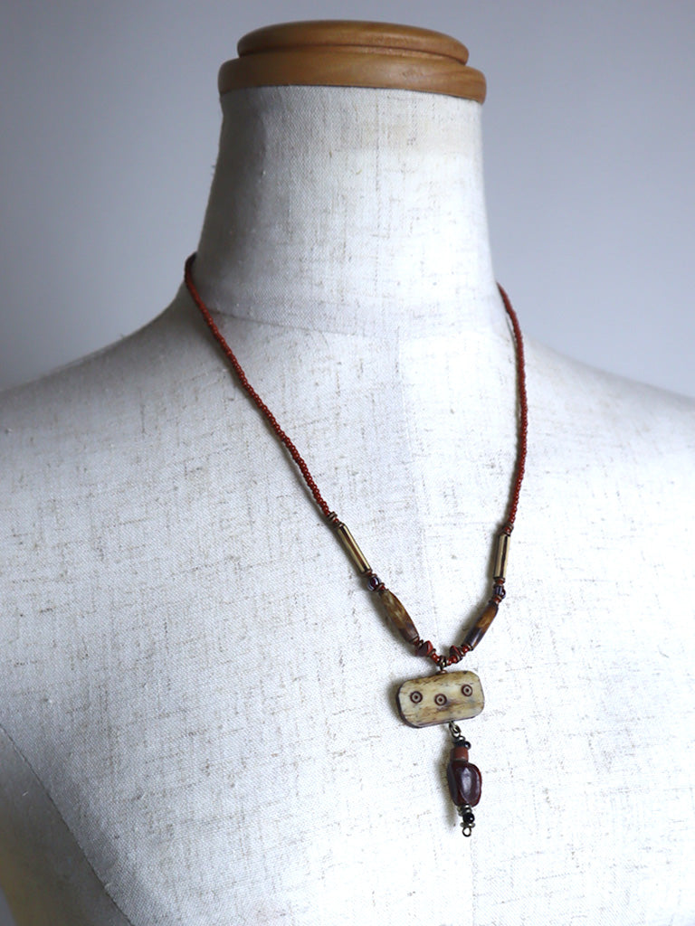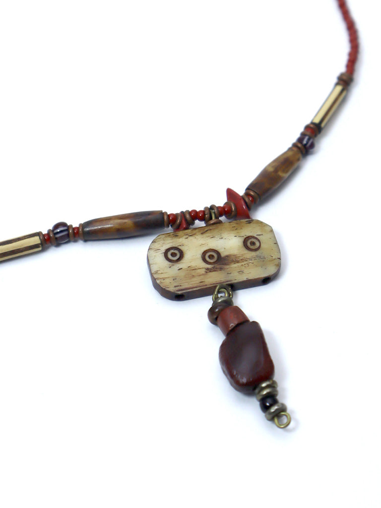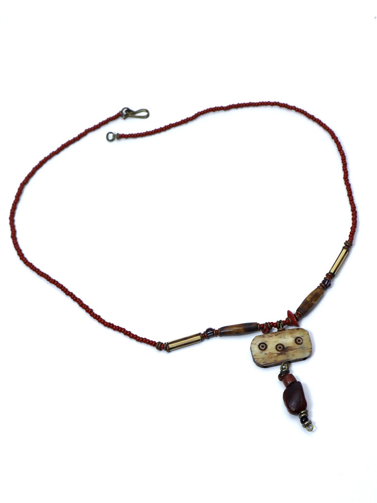 素材:ガラスビーズ、ウッドビーズ、牛骨ビーズ、種子ビーズ、真鍮
