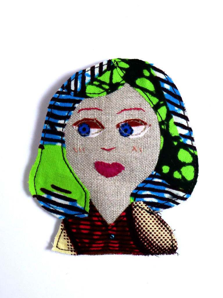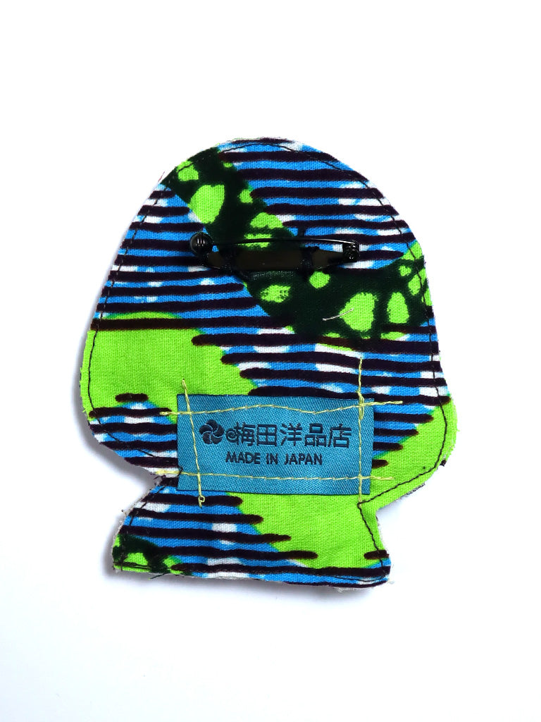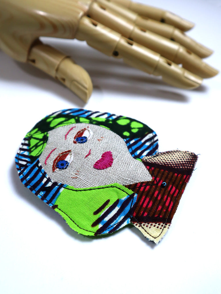 服やバッグの縫製過程で出る余り布(はぎれ)を使用、一点品のカラフルなアップサイクルのブローチです。