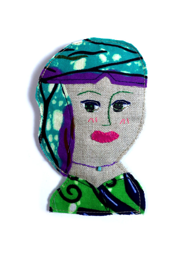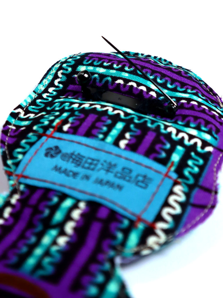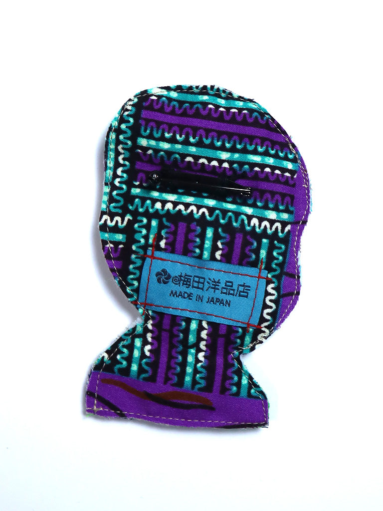 服やバッグの縫製過程で出る余り布(はぎれ)を使用、一点品のカラフルなアップサイクルのブローチです。