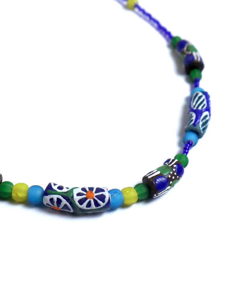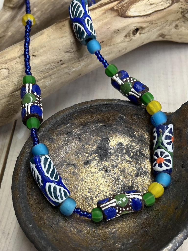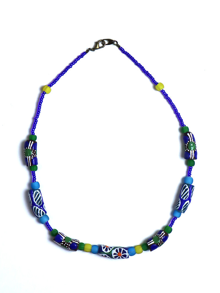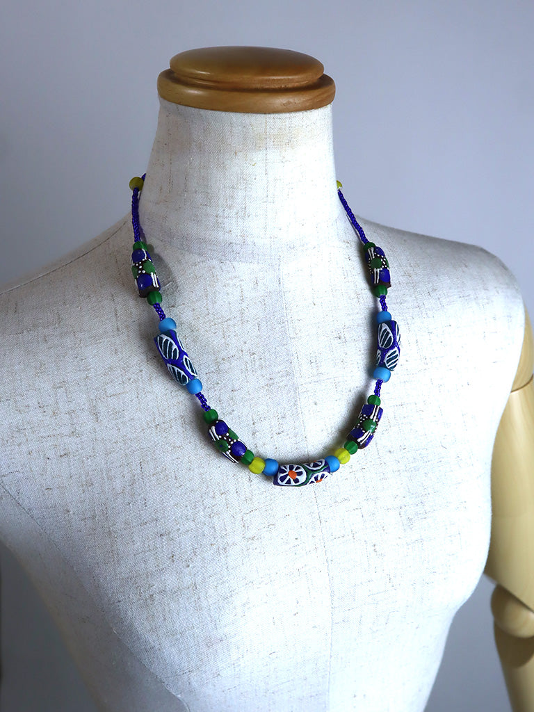 西アフリカのガーナ伝統の再生(リサイクル)ガラスビーズを使用した、梅田洋品店オリジナルのネックレスです。