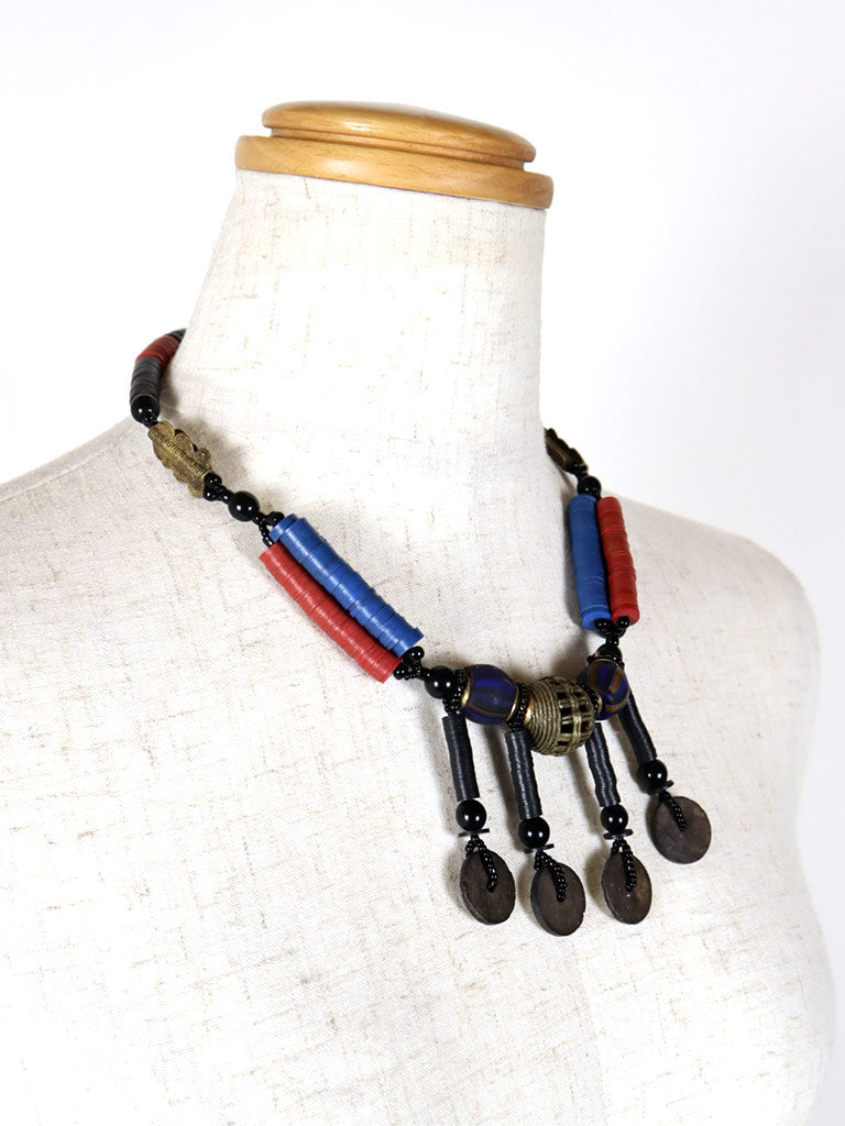 素材:ガラスビーズ、ココナッツ・ディスク、真鍮、ウッド・ディスク