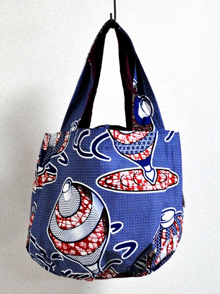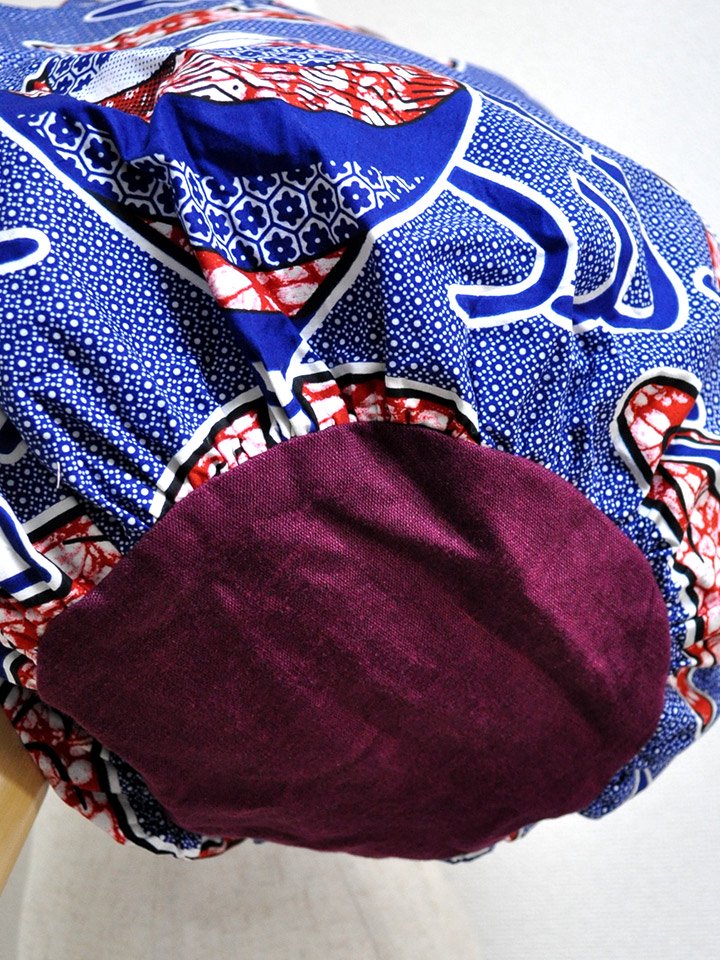 たとえば、服が柄物のときはバッグをリネンの側に裏返し、服がモノトーンのときはバッグはアフリカンプリントに。