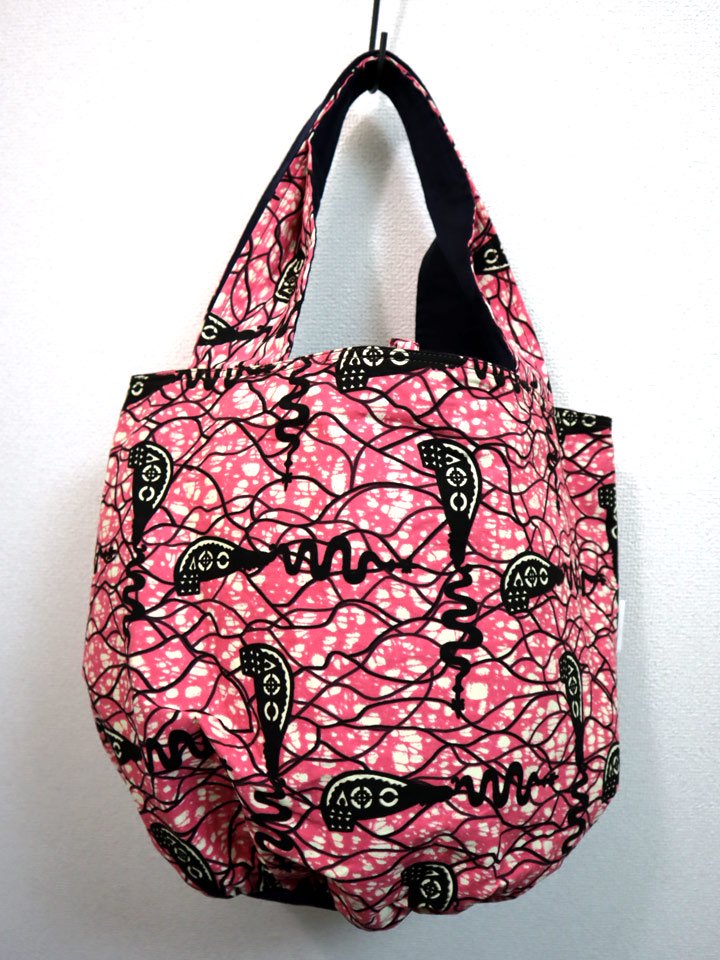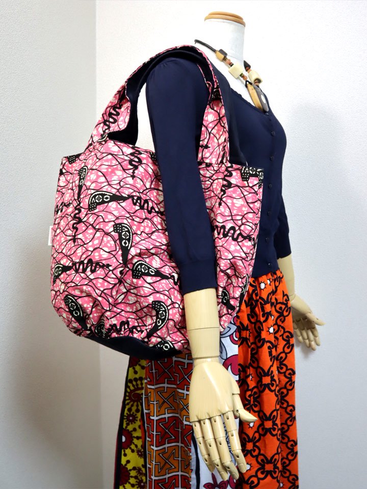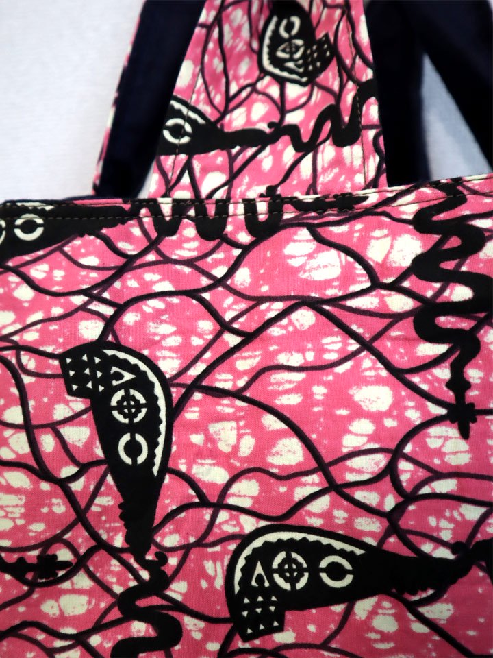 たとえば、服が柄物のときはバッグをリネンの側に裏返し、服がモノトーンのときはバッグはアフリカンプリントに。