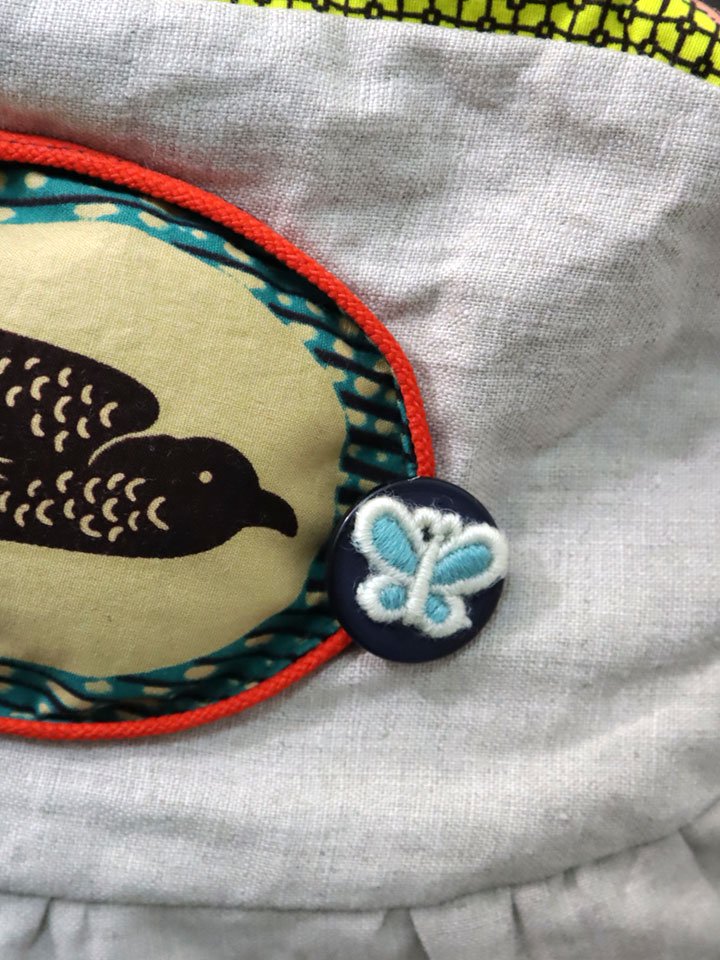 【素材】麻、綿、レーヨンブレード、真鍮金具、アクリルボタン