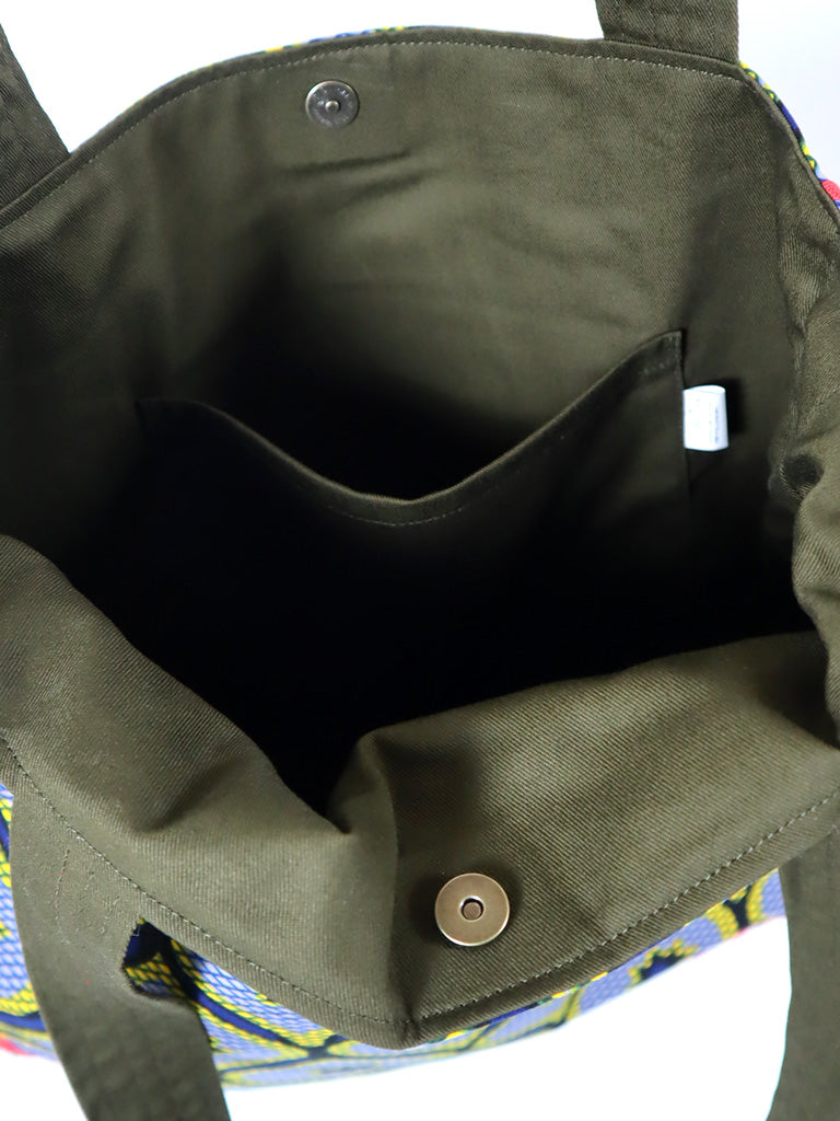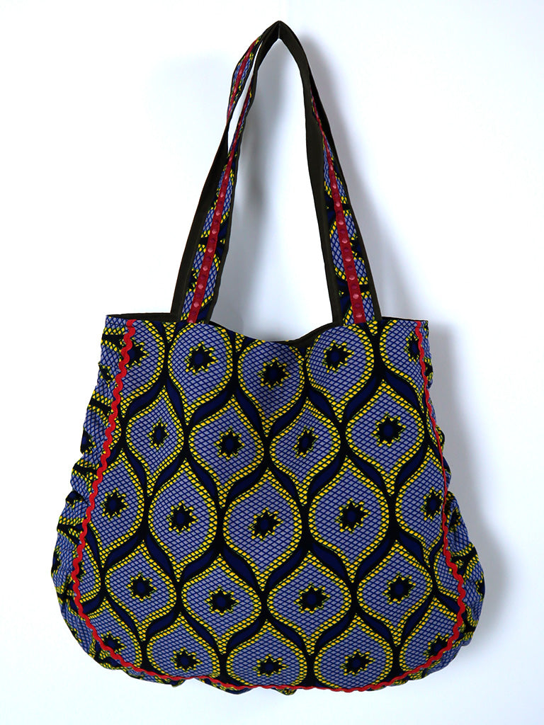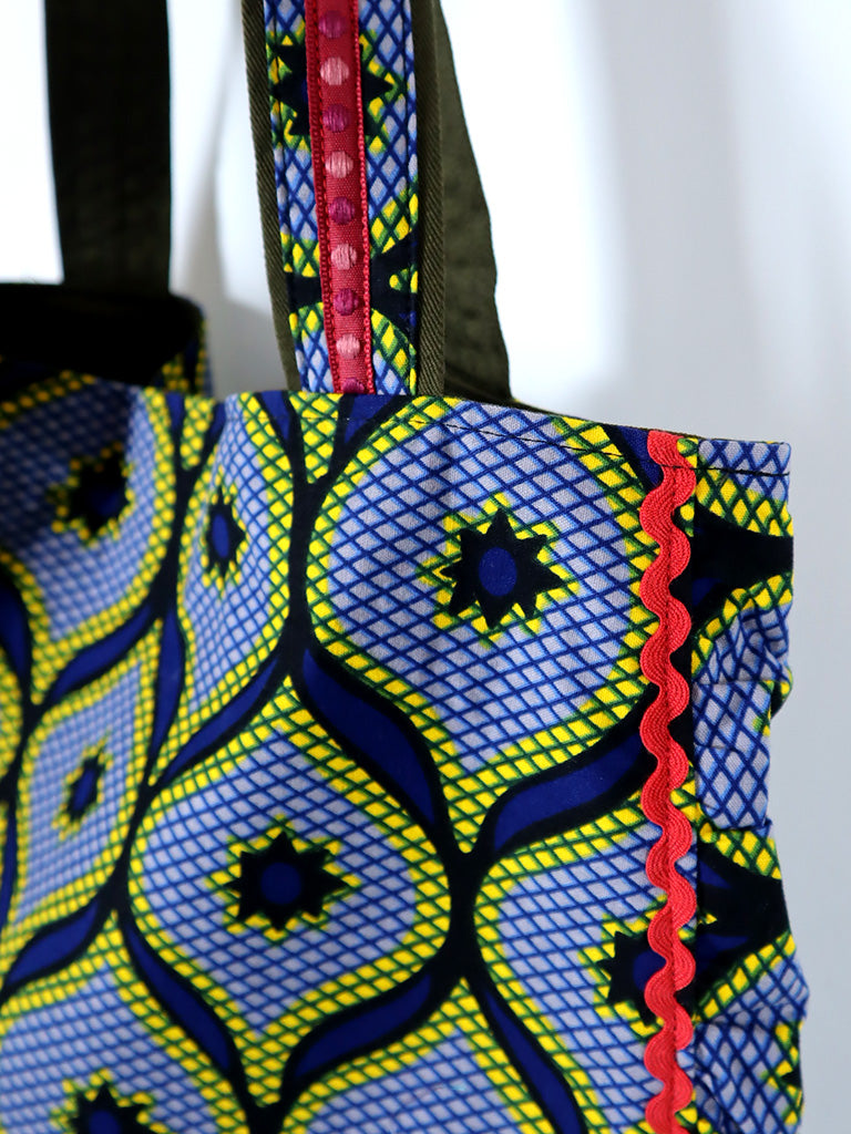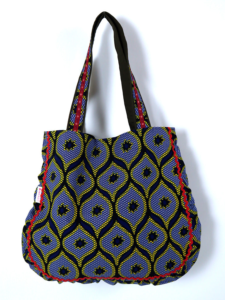 西アフリカのテキスタイルで作ったトート型バッグです。