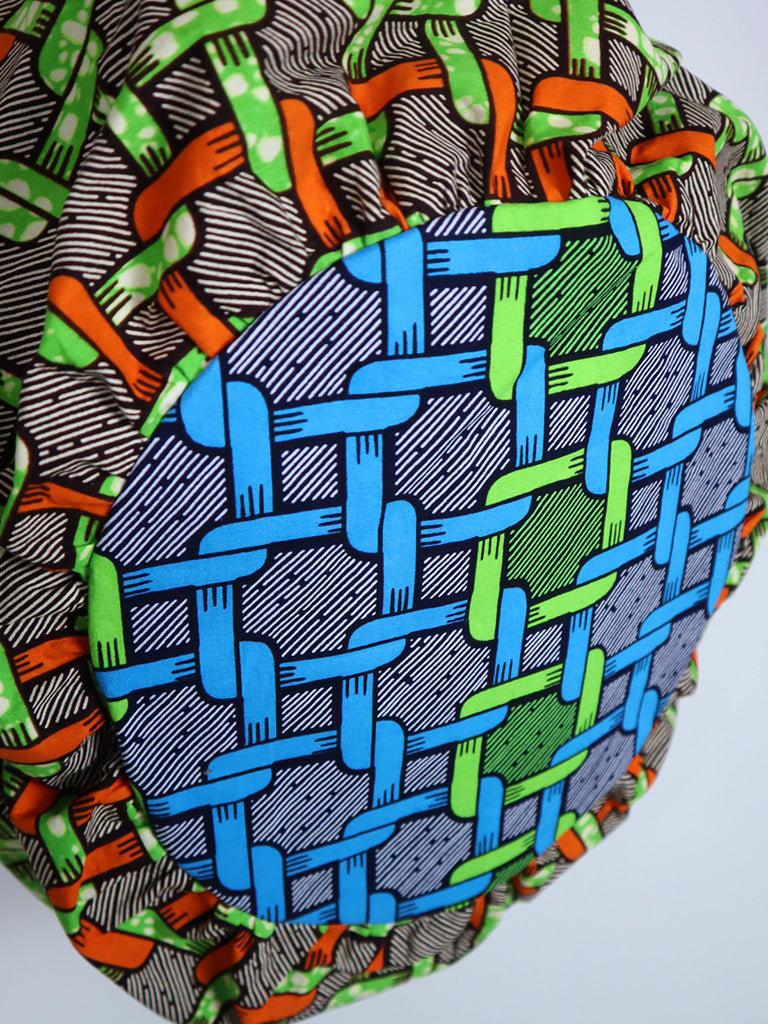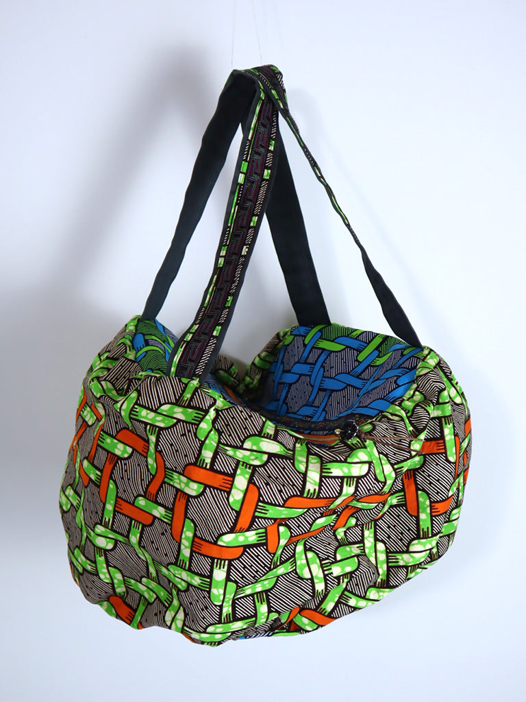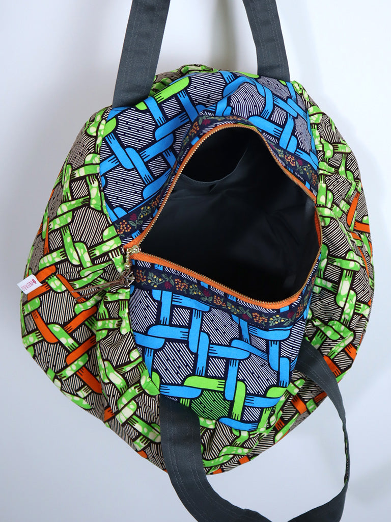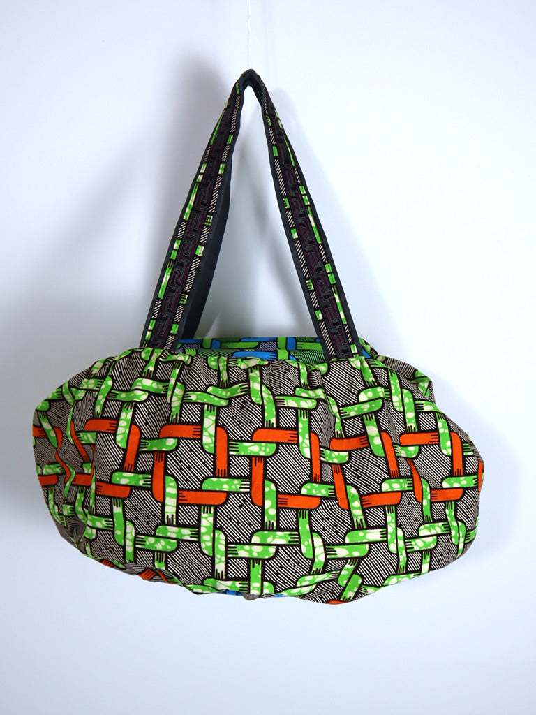 【サイズ】ファスナー口 30cm/ H 28cm / W 30cm + ギャザー分約10cm / もち手 53cm / 裏ポケット H 18cm、W 18cm