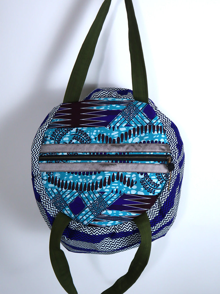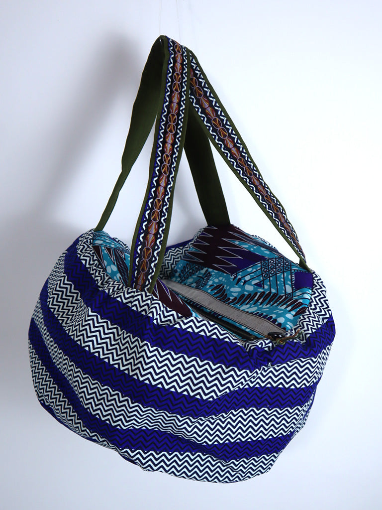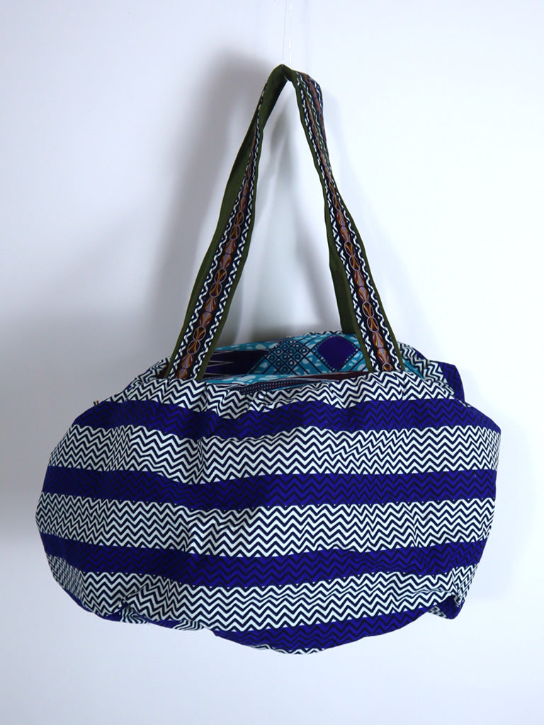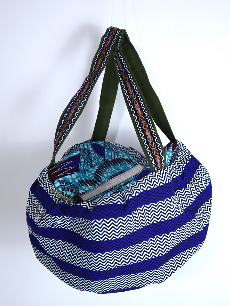 ファスナー付きパンプキンバッグ・ブルーストライプ