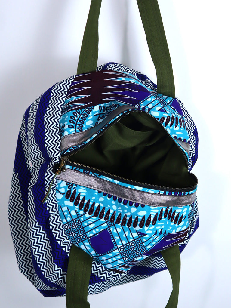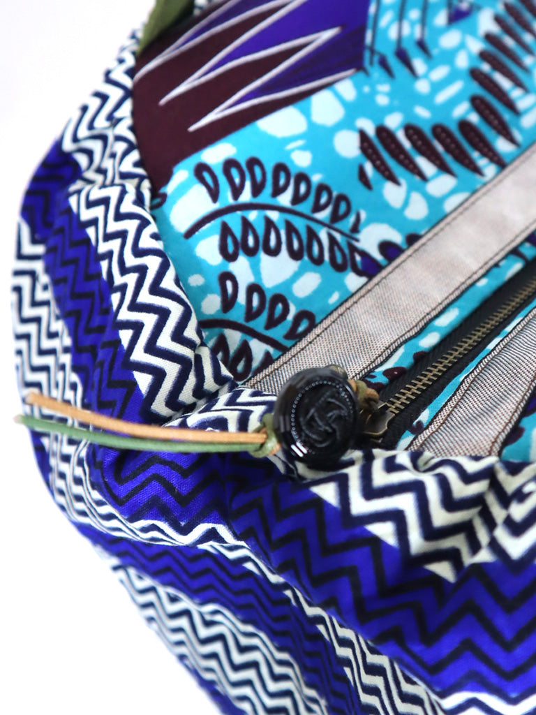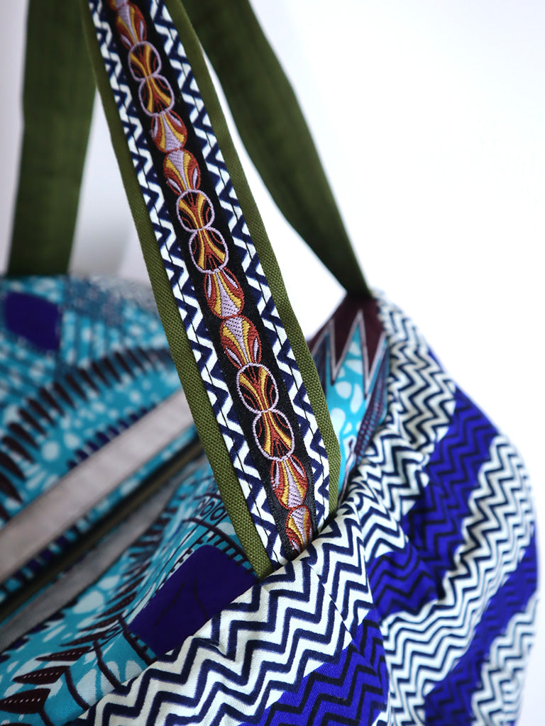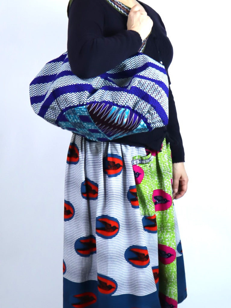 ファスナー付きパンプキンバッグ・ブルーストライプ