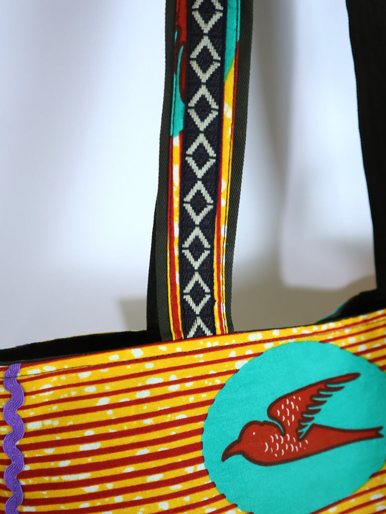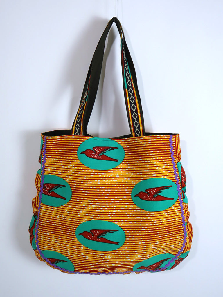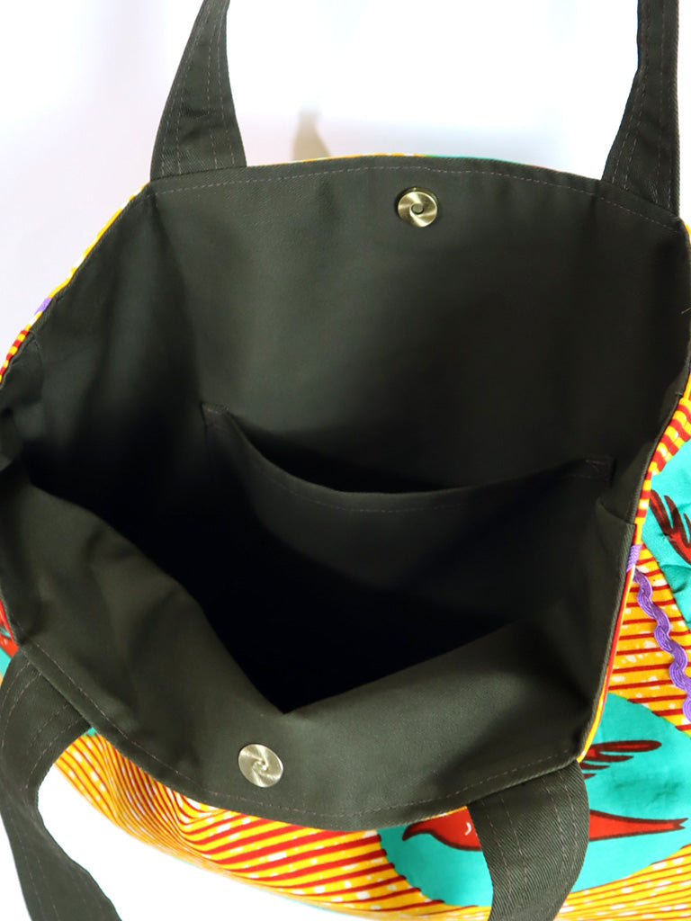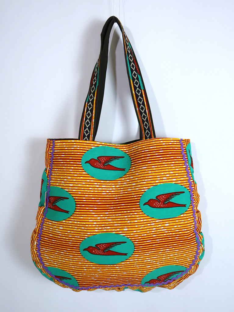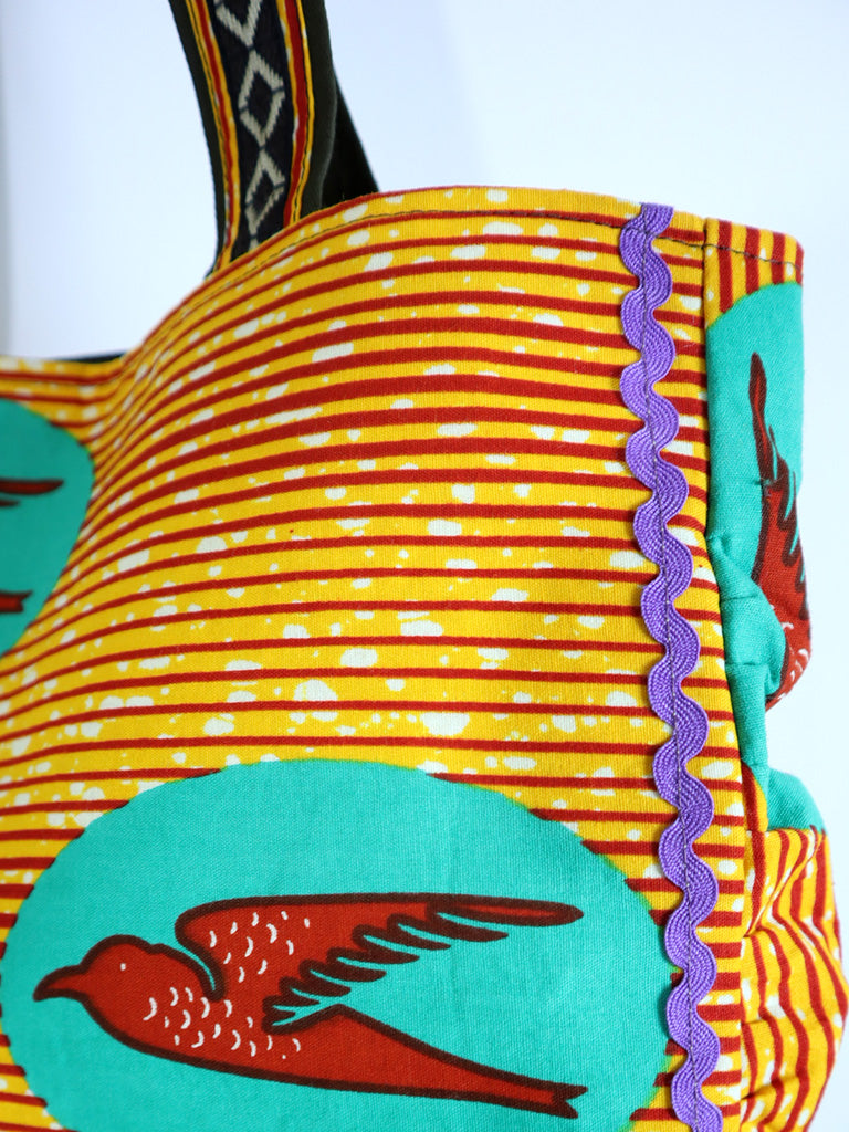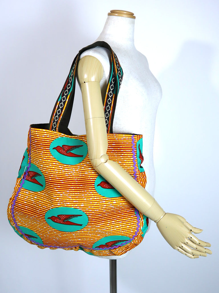 西アフリカのテキスタイルで作ったトート型バッグです。