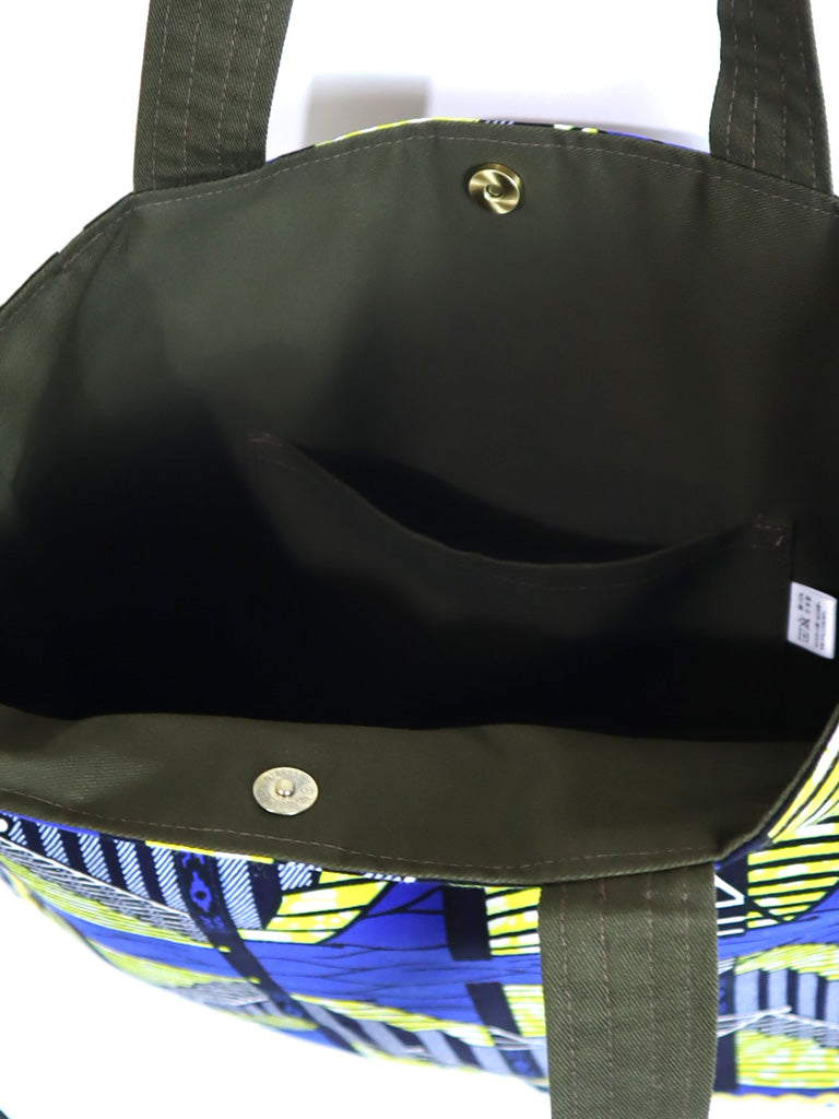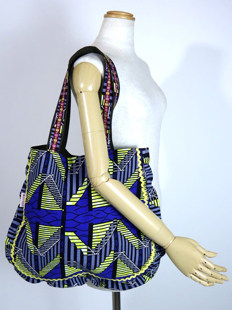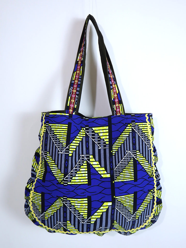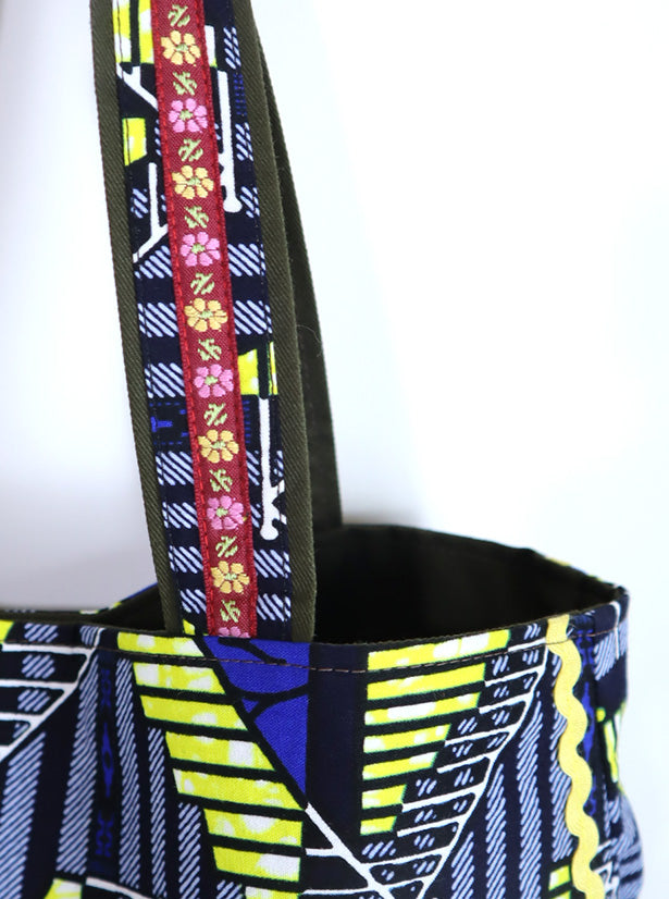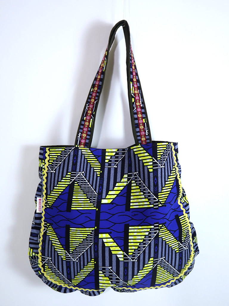 西アフリカのテキスタイルで作ったトート型バッグです。