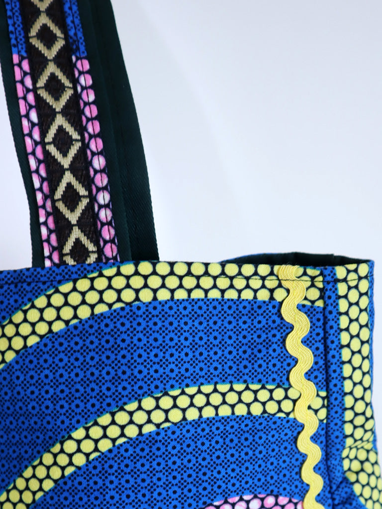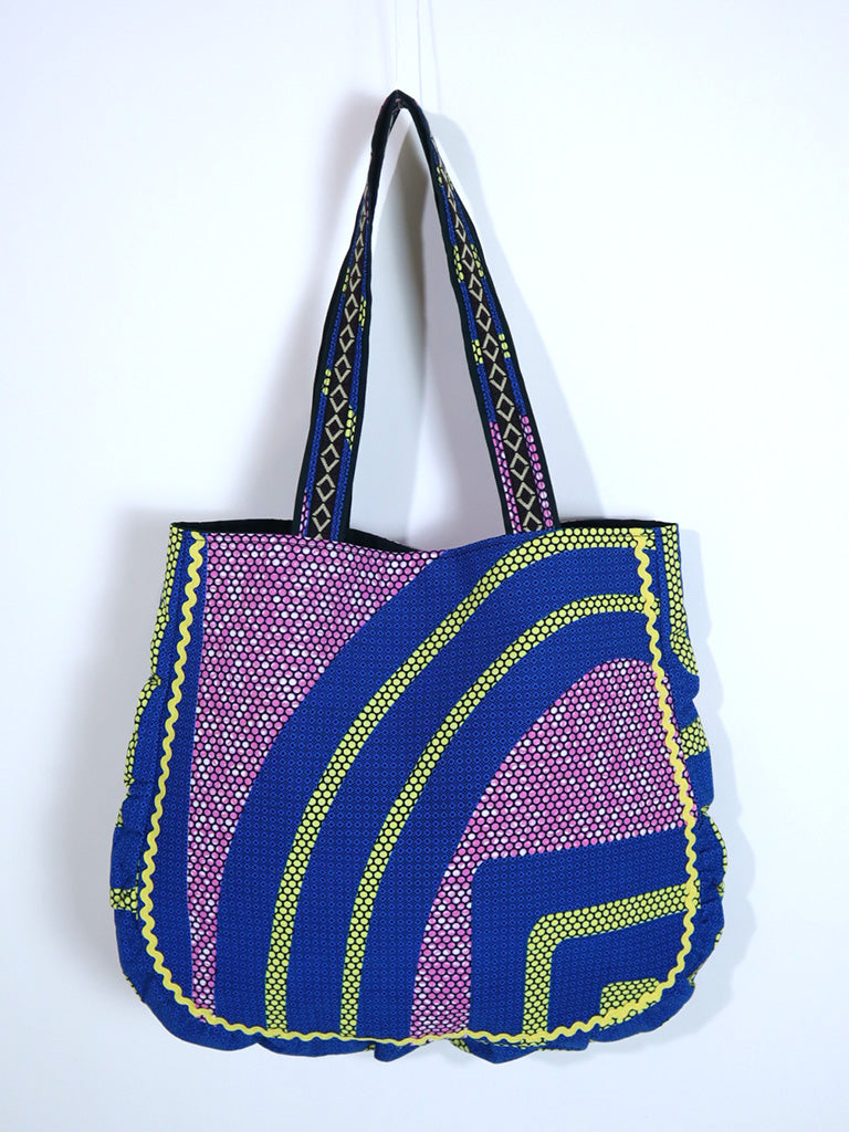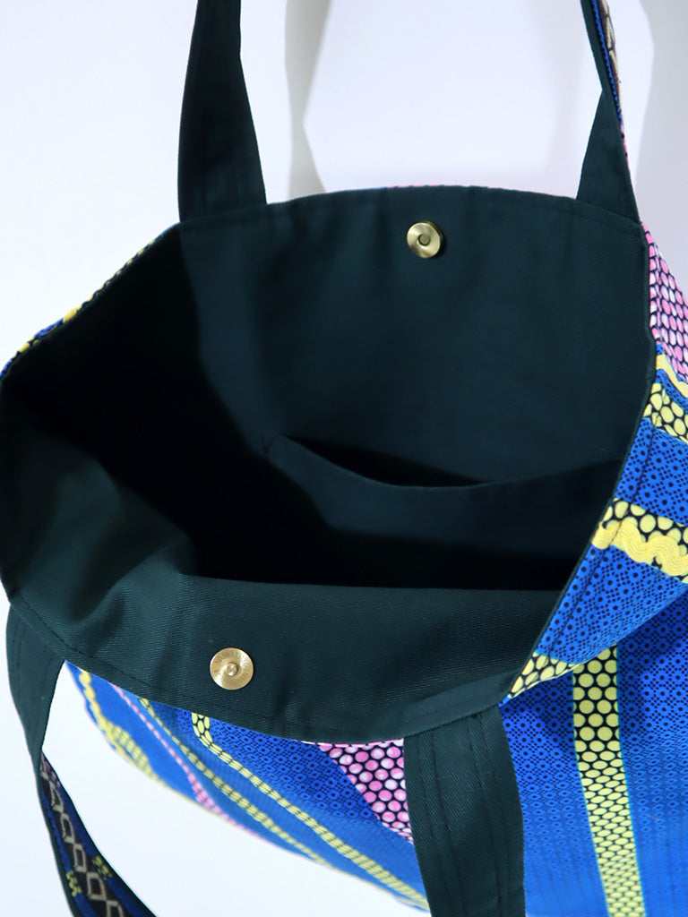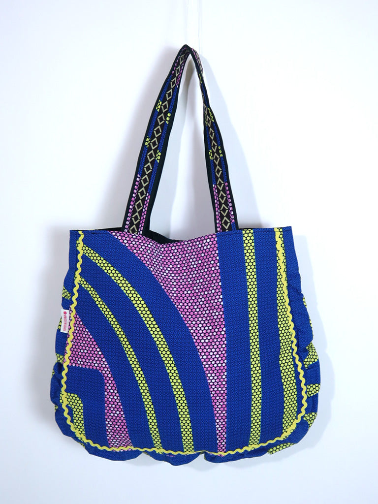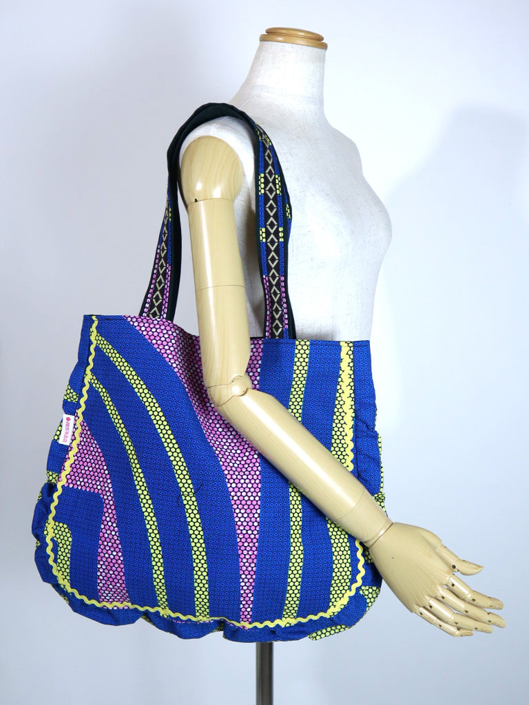 西アフリカのテキスタイルで作ったトート型バッグです。