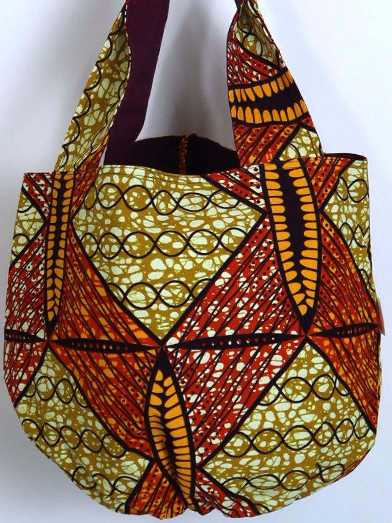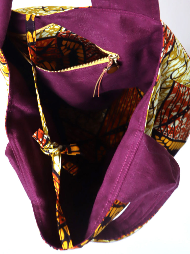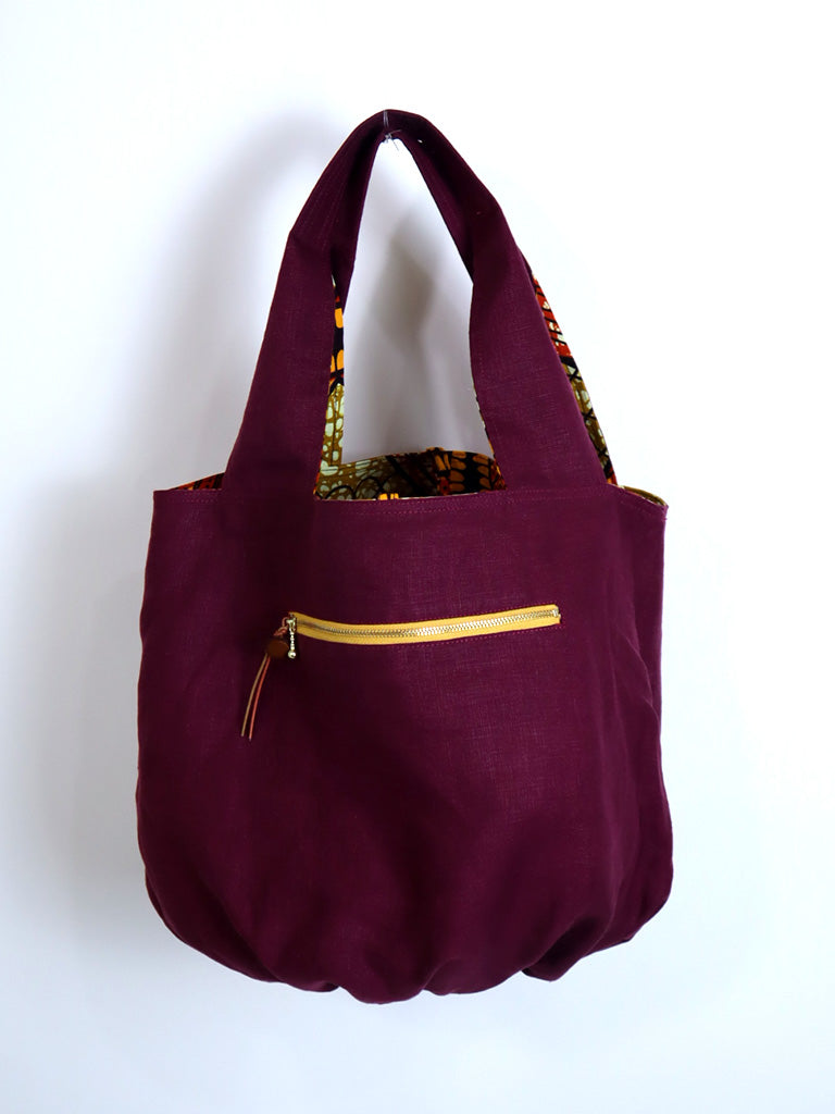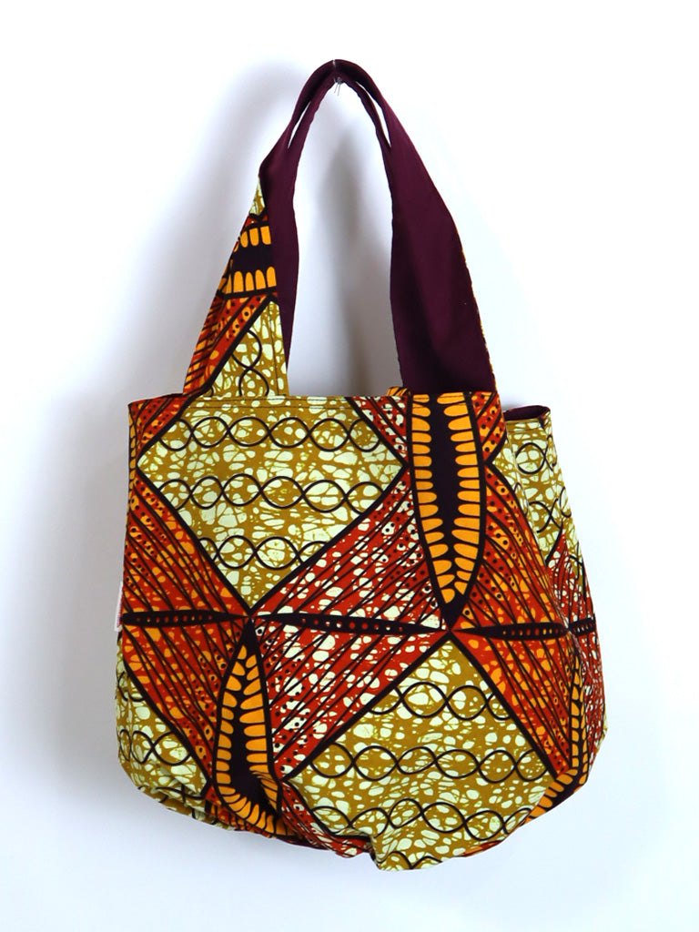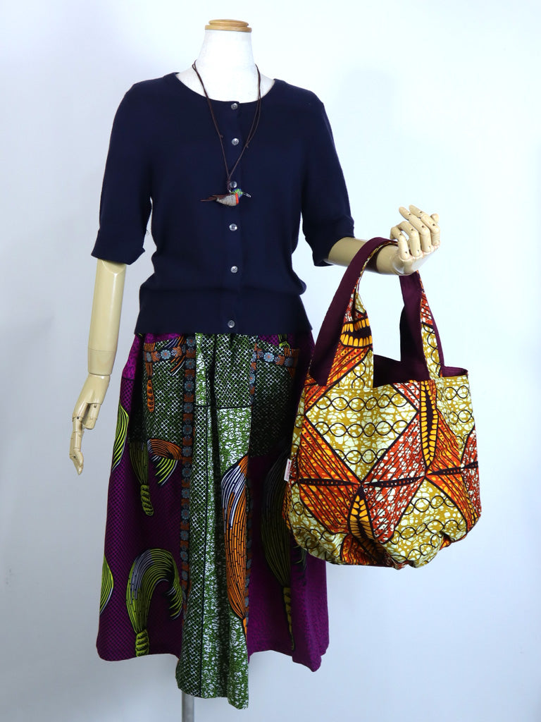たとえば、服が柄物のときはバッグをリネンの側に裏返し、服がモノトーンのときはバッグはアフリカンプリントに。