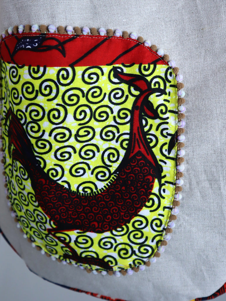 アフリカンプリントならではの個性的なモチーフが映えるデザインに仕上げました。