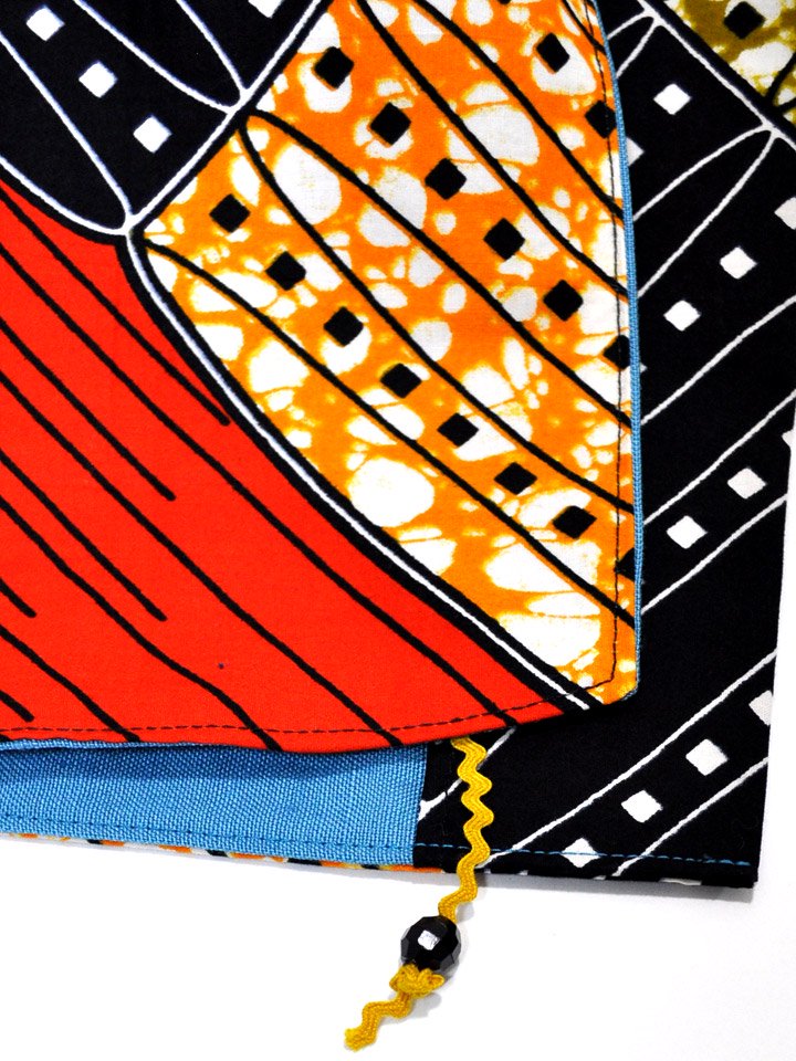 【新書用】アフリカンプリントのブックカバー・ライン&スクエアドット