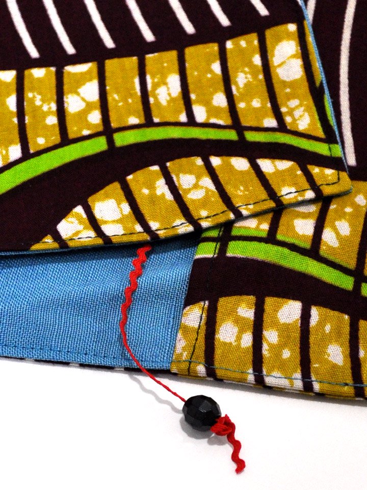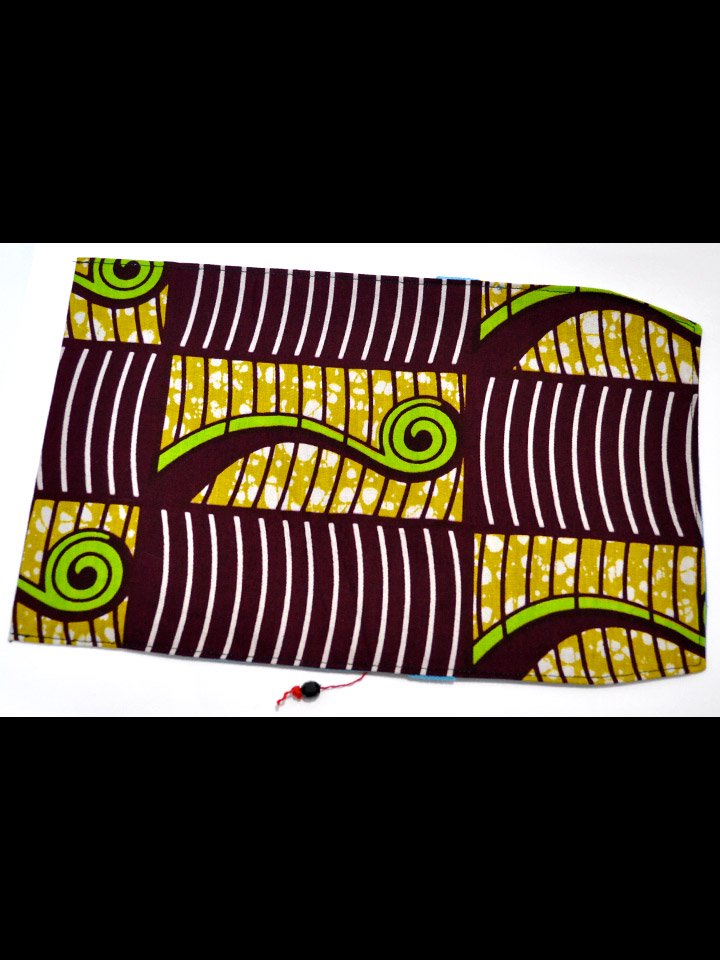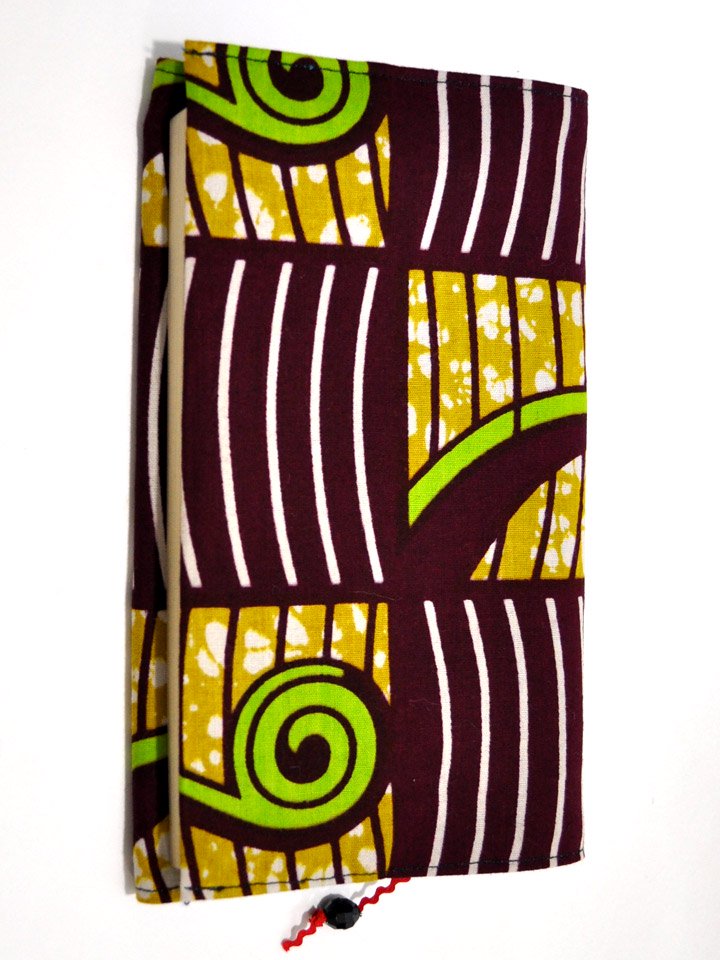 【新書用】アフリカンプリントのブックカバー・ブラウンライン&グリーンアイビー