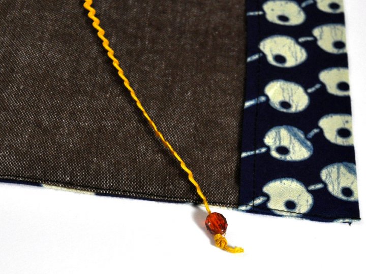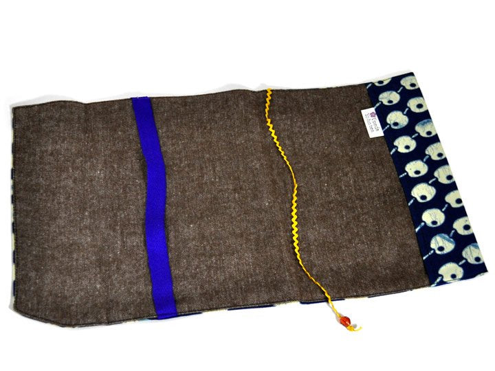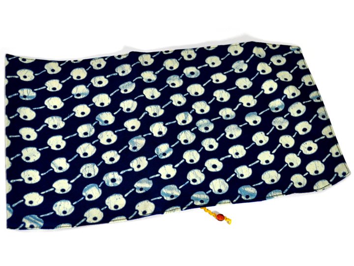 【単行本(四六判)用】アフリカンプリントのブックカバー・ブルー×ホワイトビーズ
