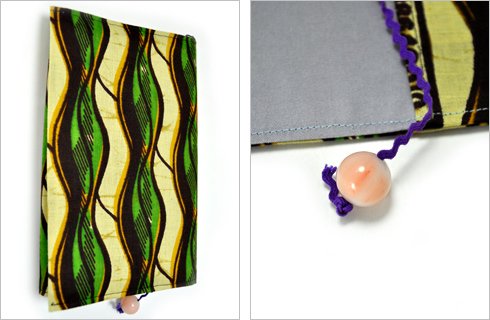西アフリカのプリント布(パーニュ)で作ったブックカバーです。