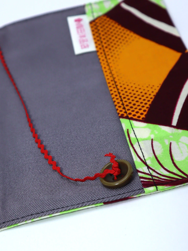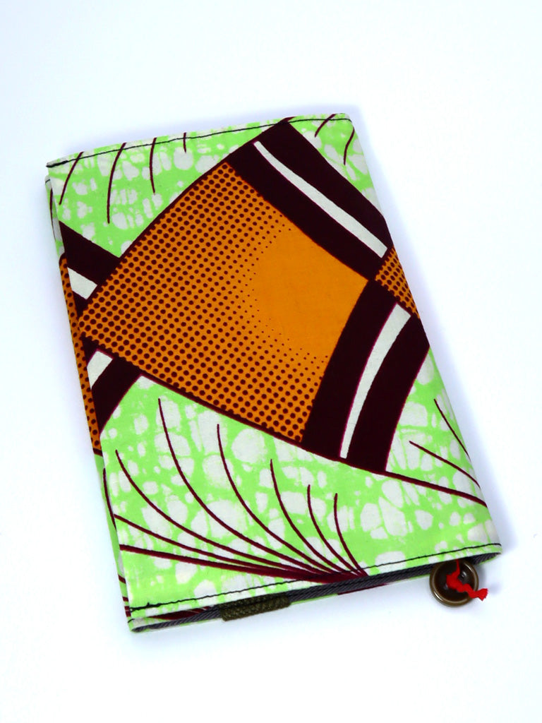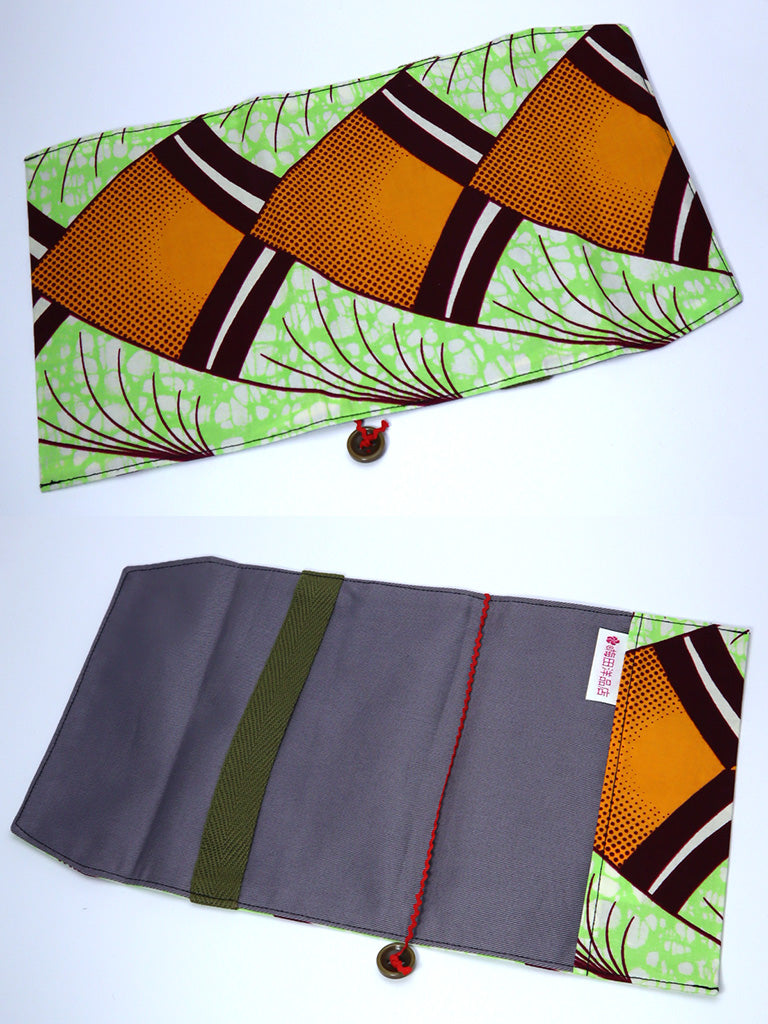 【文庫用】アフリカンプリントのブックカバー・グリーン×オレンジ