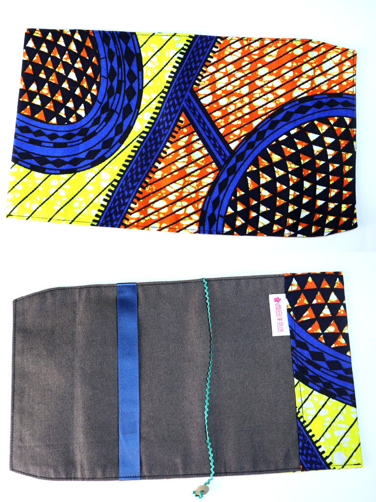 【文庫用】アフリカンプリントのブックカバー・イエロー×オレンジ