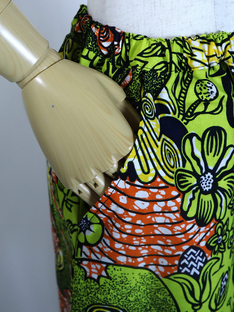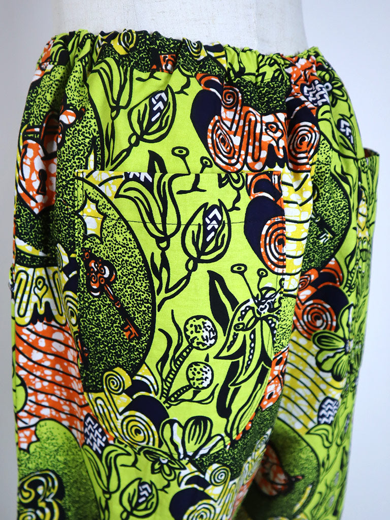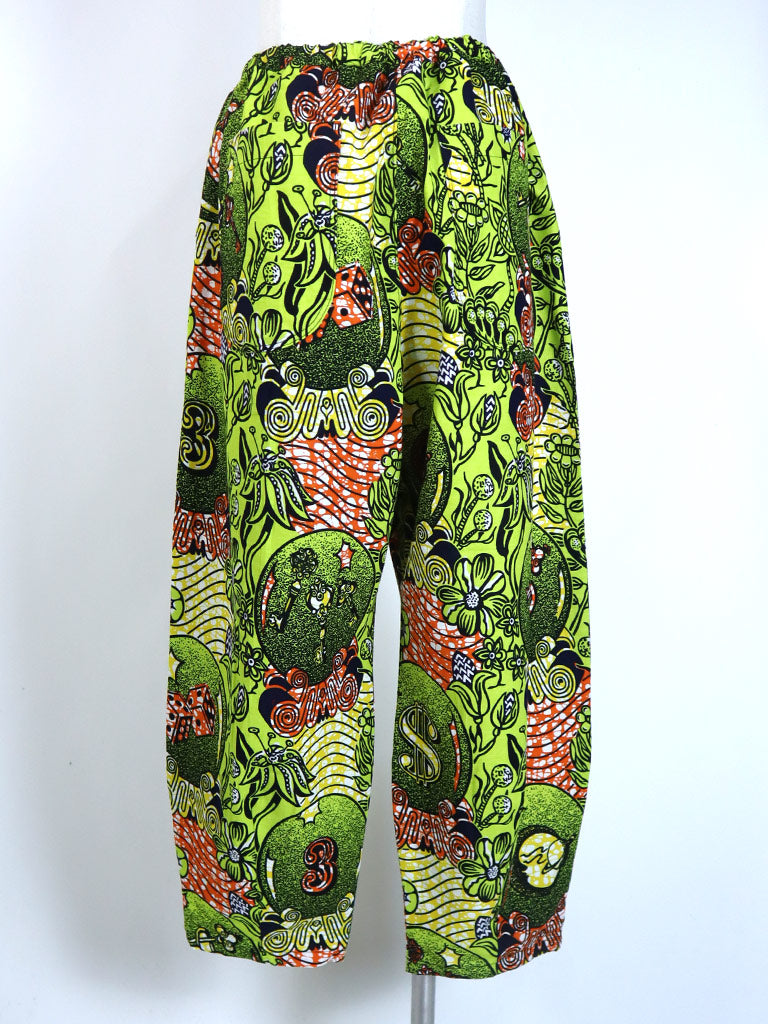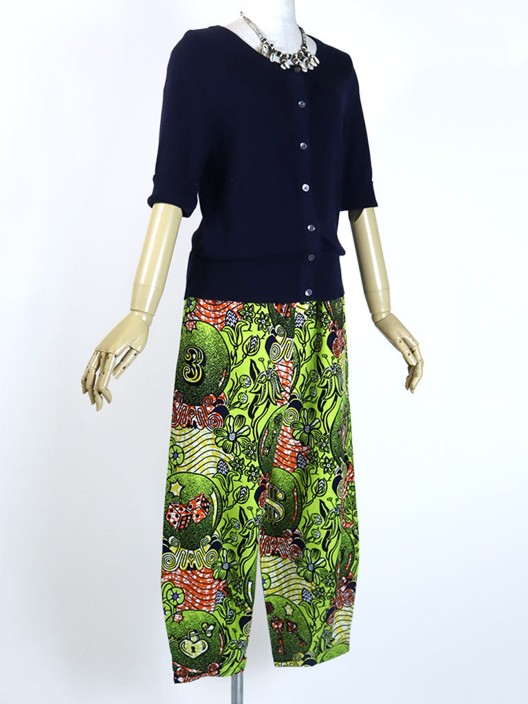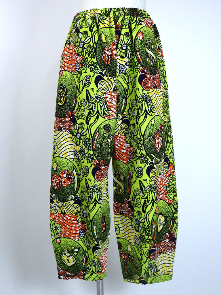 前後ポケット付きコクーンパンツ/イエローグリーン×ボタニカル