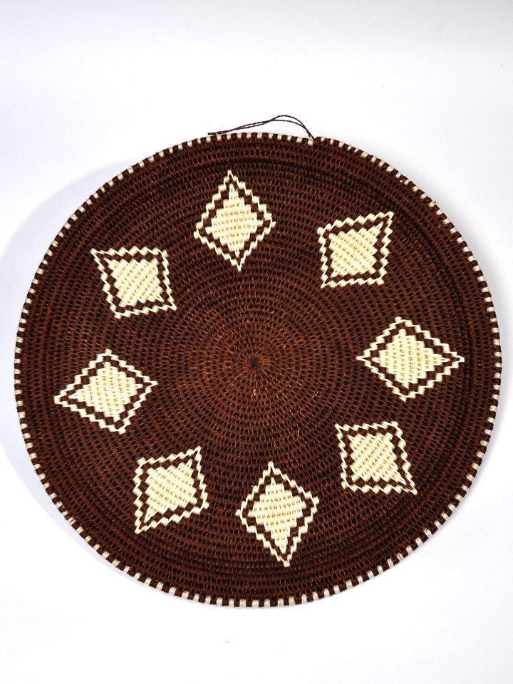 アフリカ南部、ジンバブエ共和国の女性たちが編んでいるフラットなタイプのカゴです。