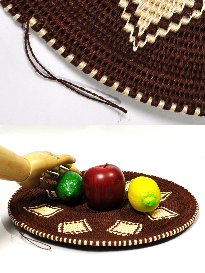 サイザル麻を使用し、高度な技術で様々にデザイン。染色は多くが草木染めです。約半月かけて作られます。