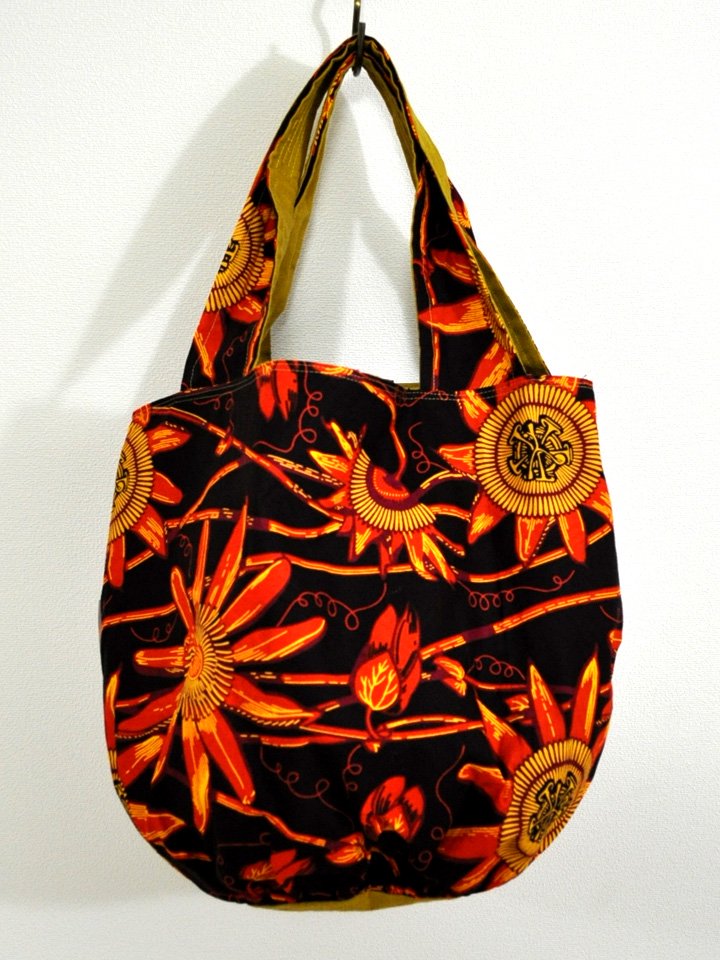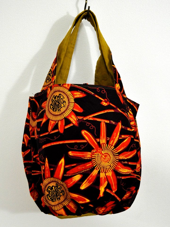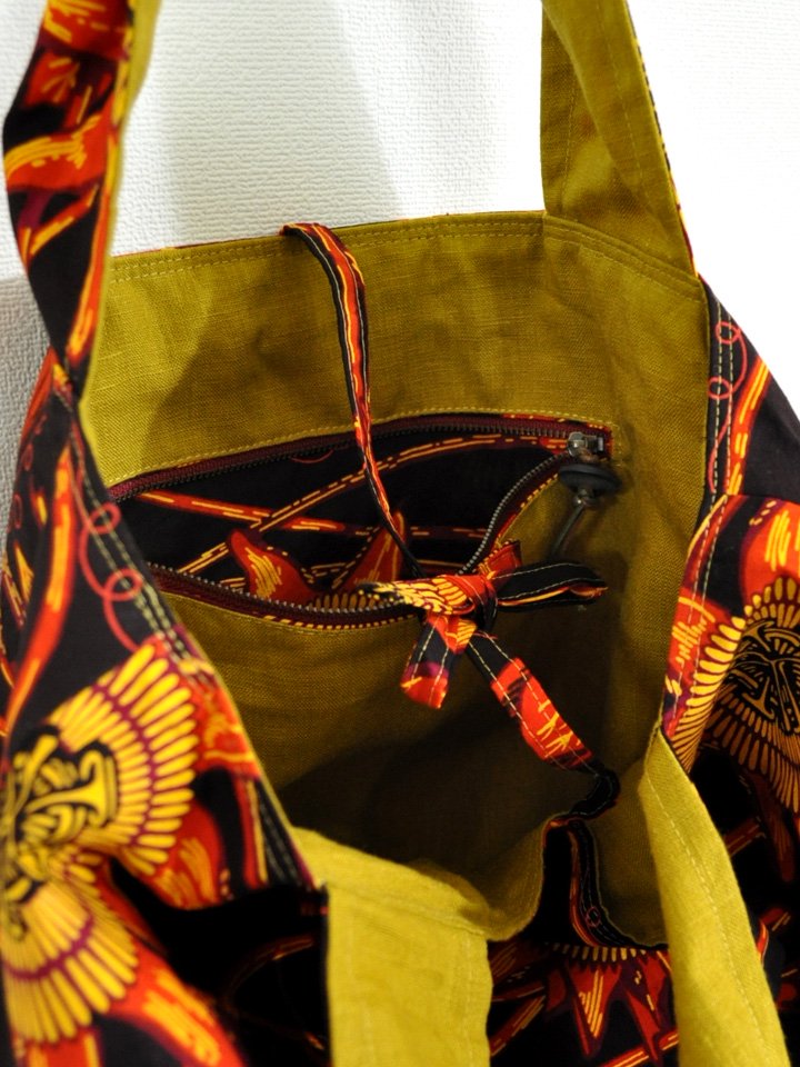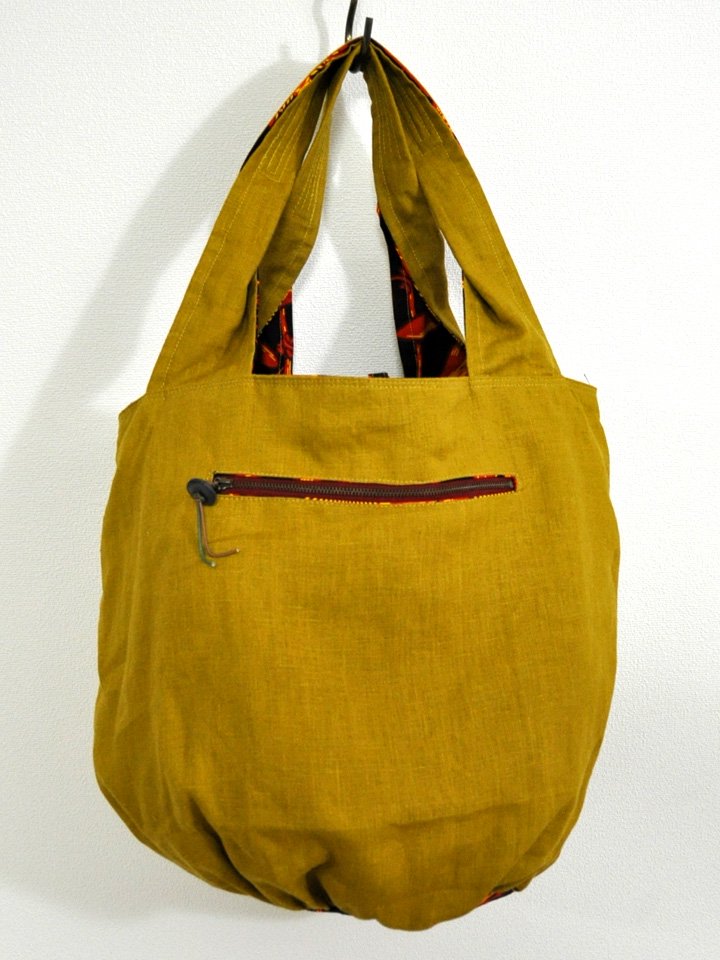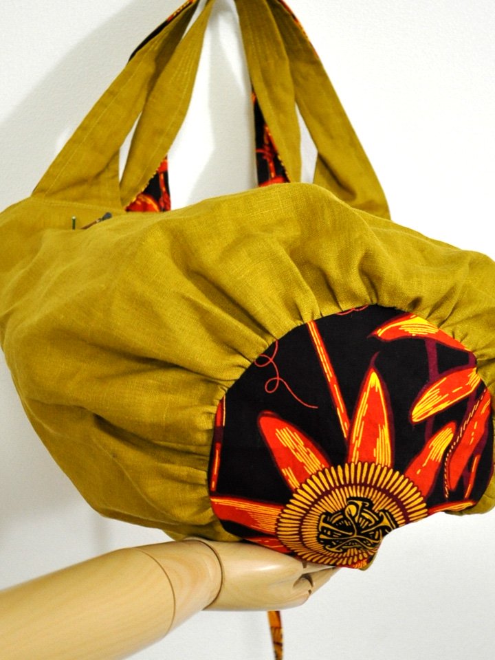 たとえば、服が柄物のときはバッグをリネンの側に裏返し、服がモノトーンのときはバッグはアフリカンプリントに。