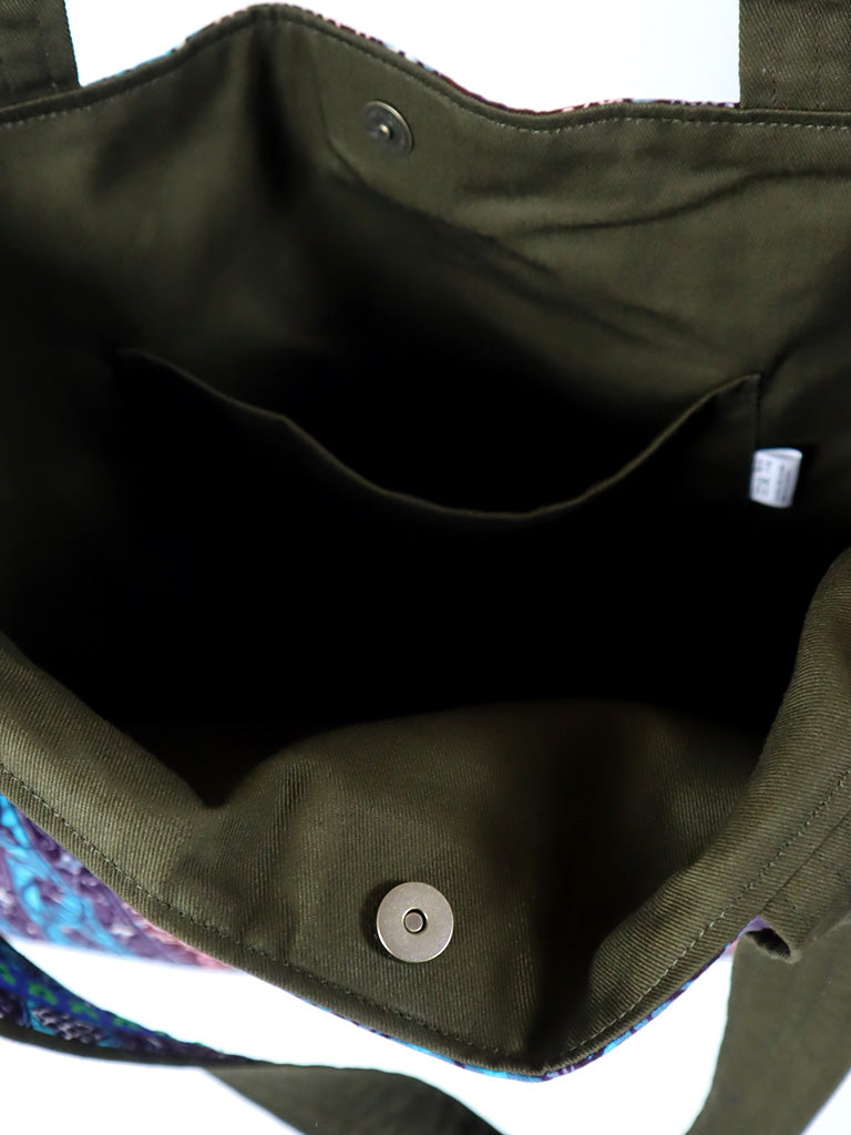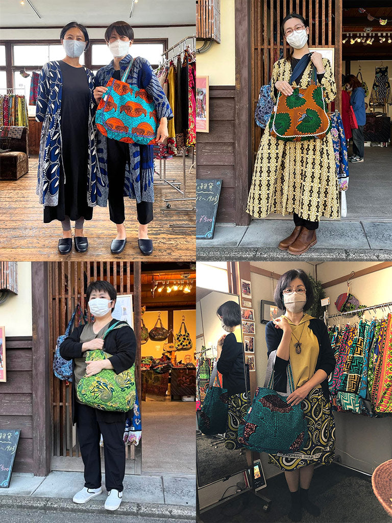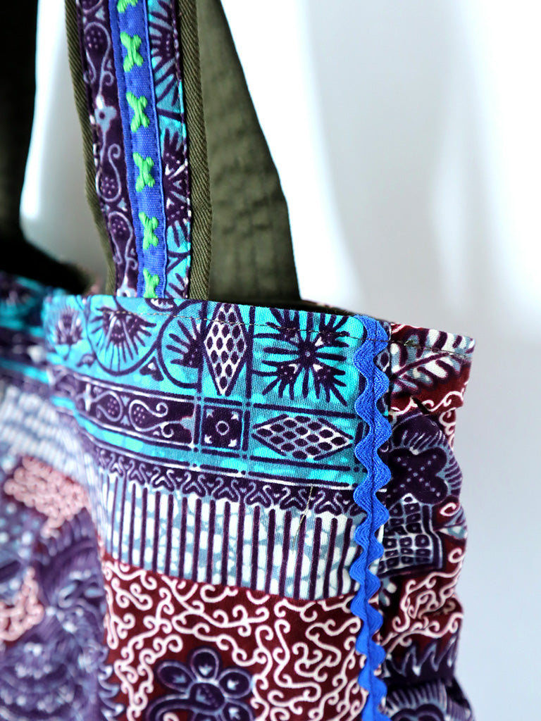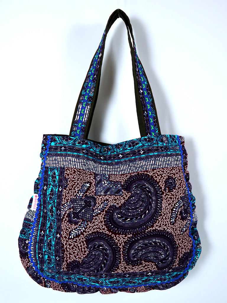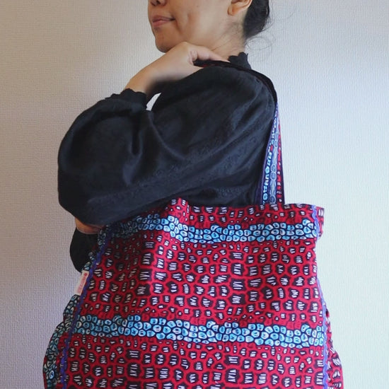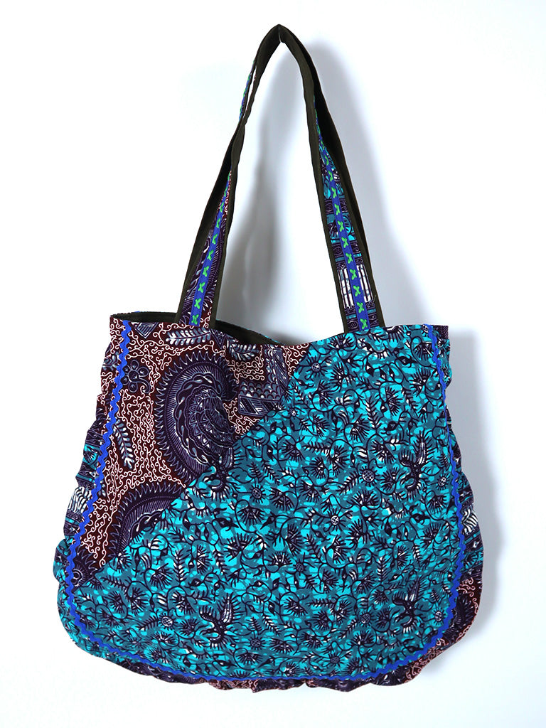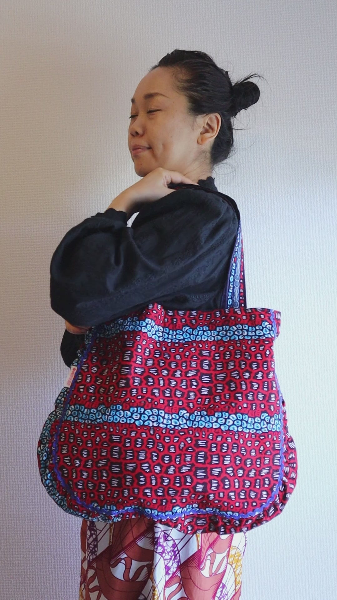 西アフリカのテキスタイルで作ったトート型バッグです。