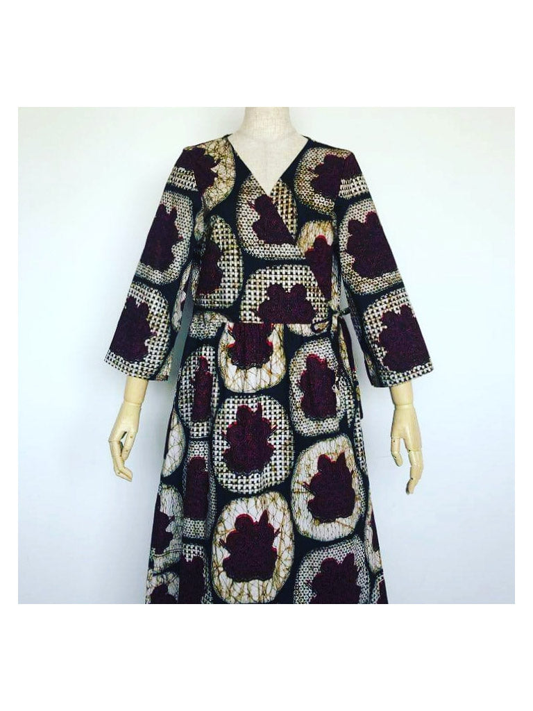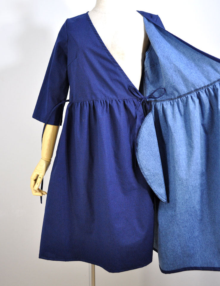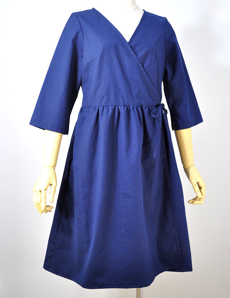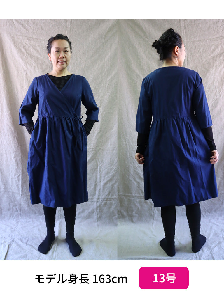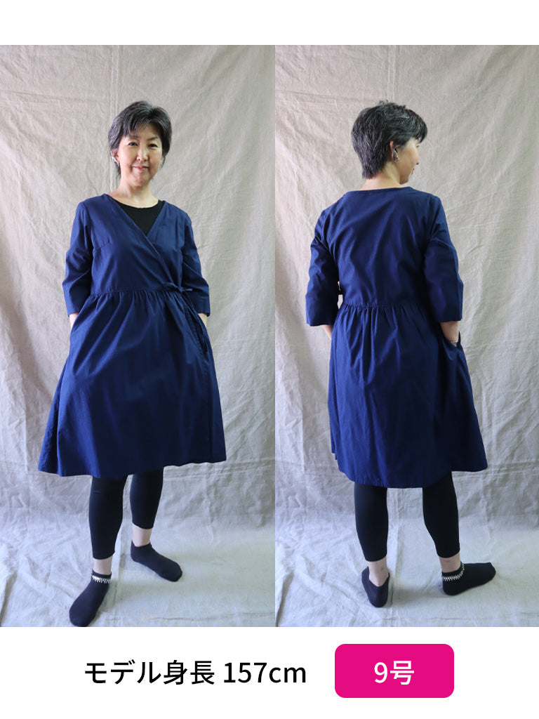 セミオーダー「A3/ポケット付き七分袖カシュクール・ラップワンピース」