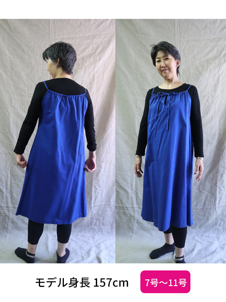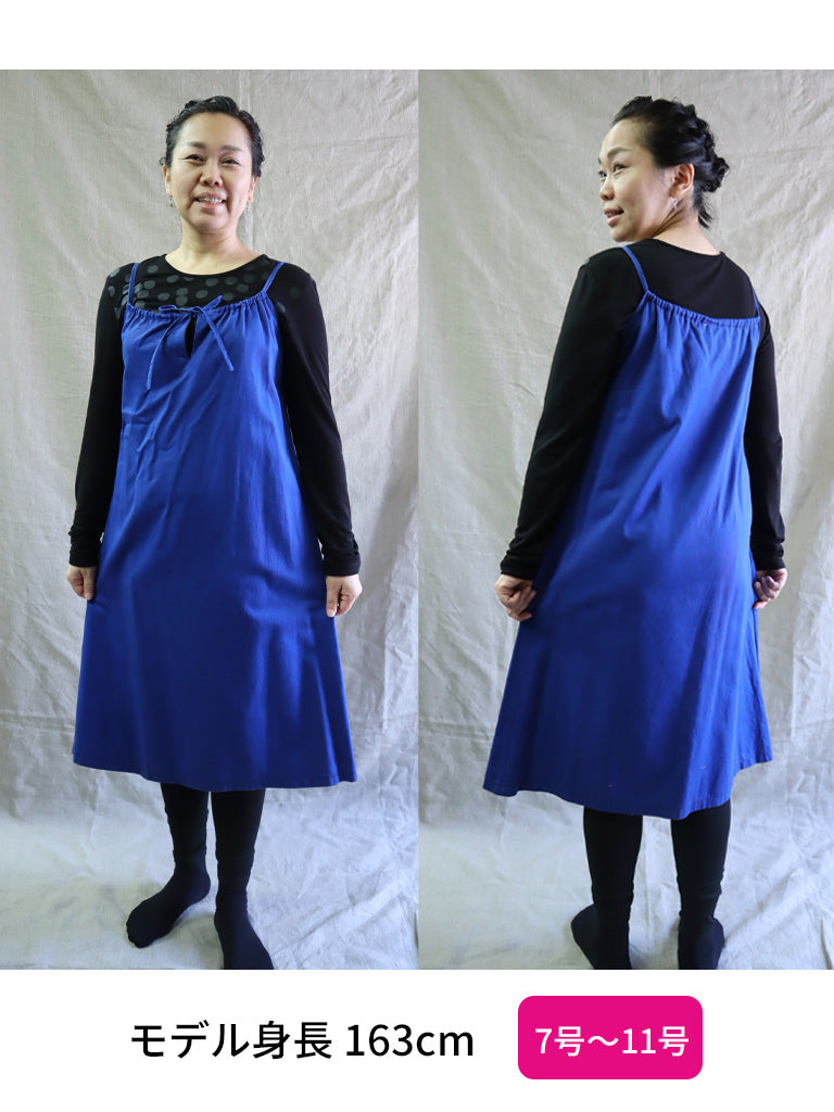 前後のあき(ひもで調節可能、肩線から)10cm / バスト 102cm / ウエスト 106cm / ヒップ 116cm / 着丈 90cm(肩ひもを除いた本体の長さ)