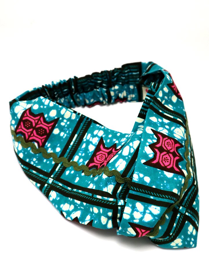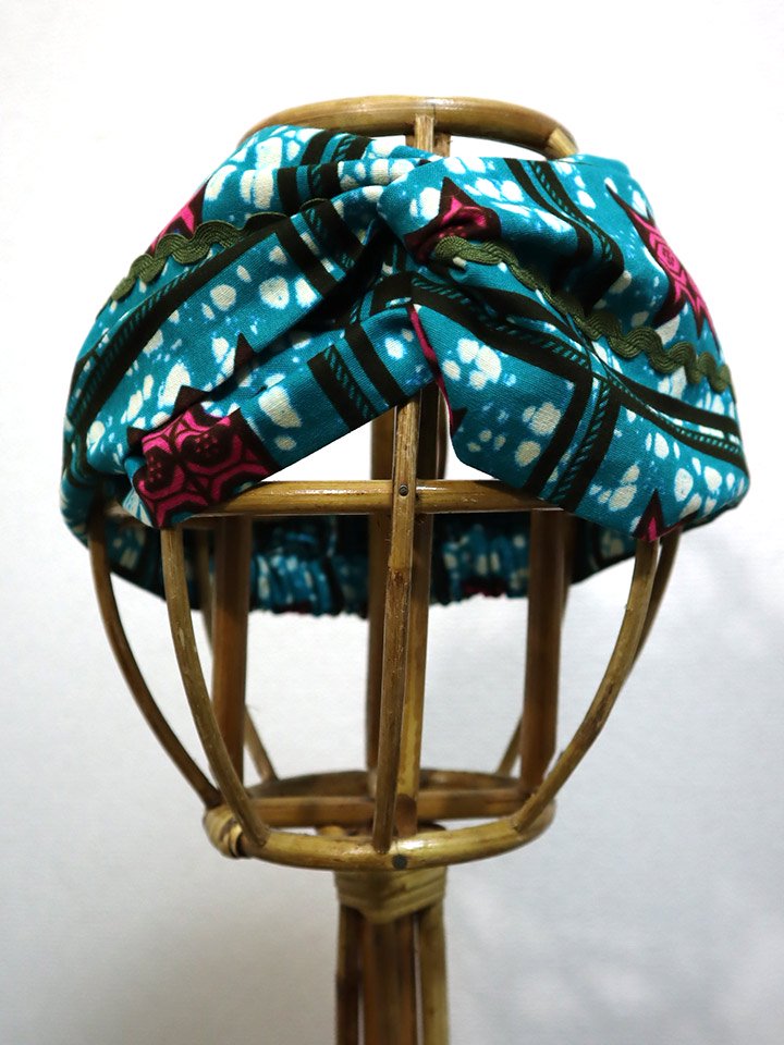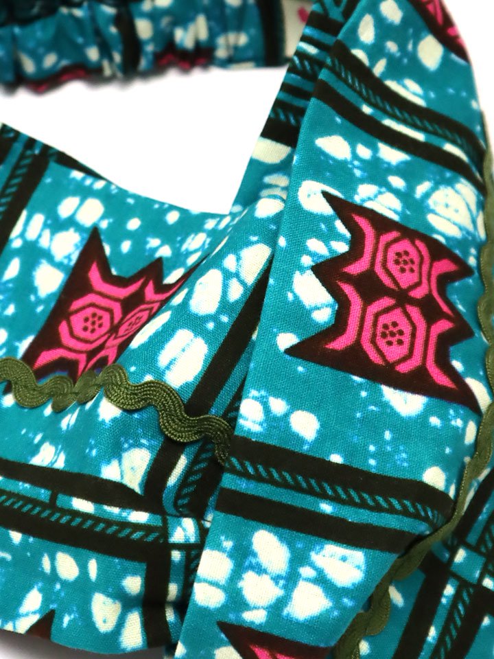 アフリカンプリントのクロスターバン・ライトブルー×ピンク