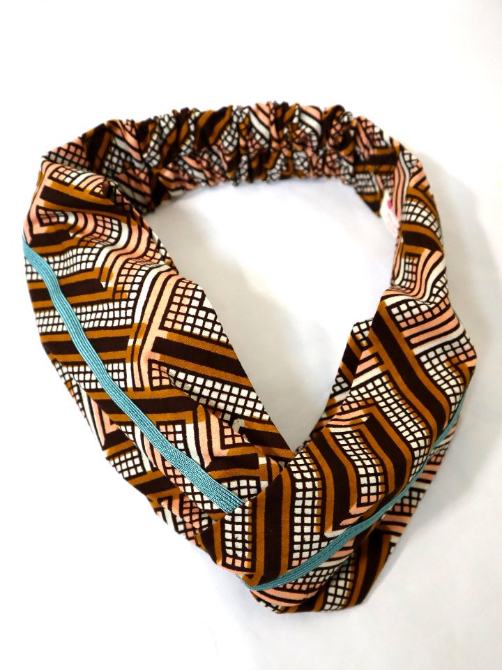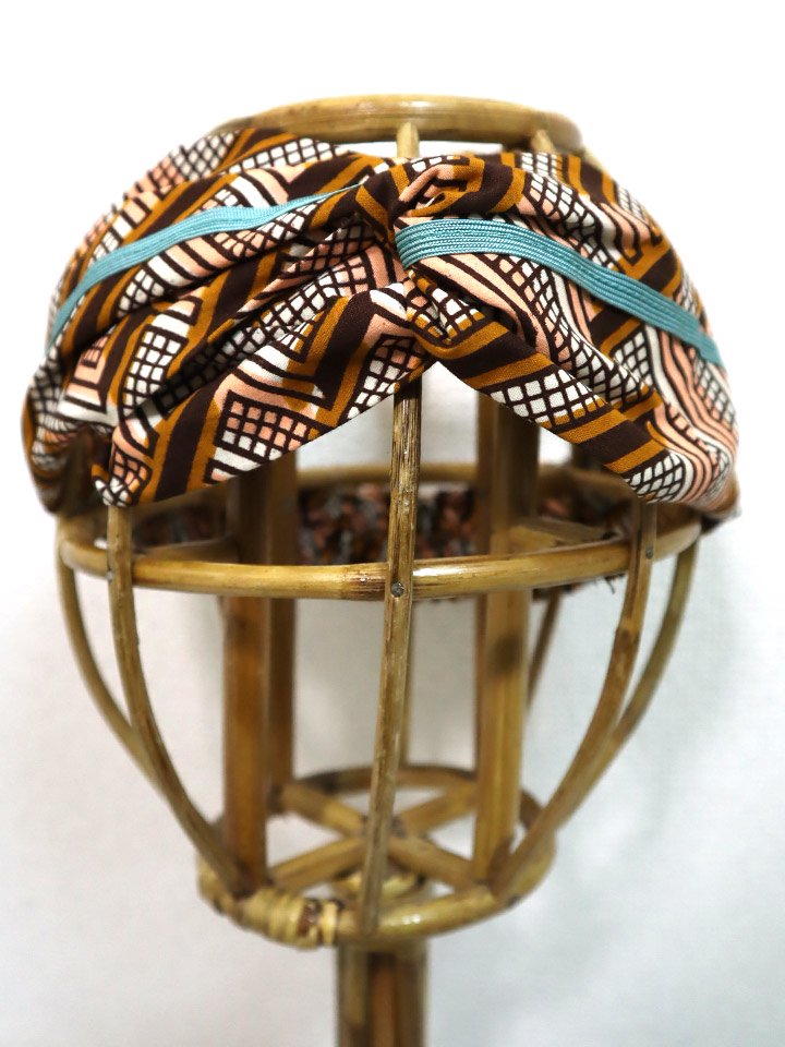 アフリカンプリントのクロスターバン・ピンク×ブラウン