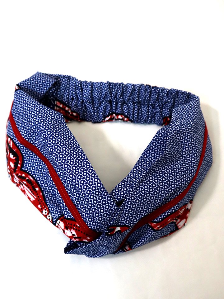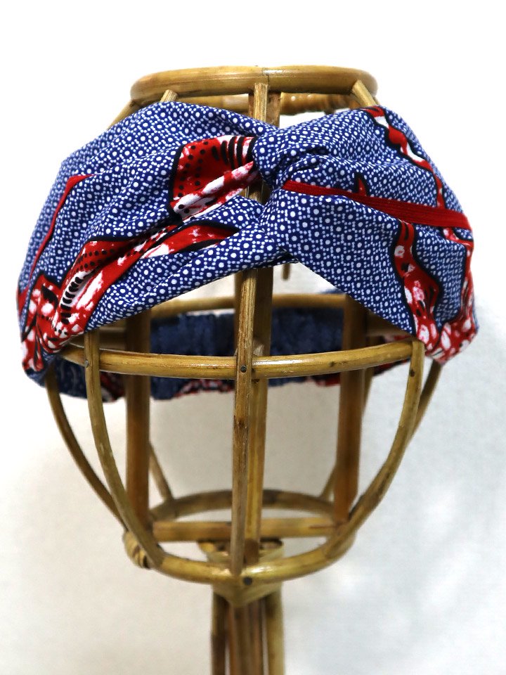 アフリカンプリントのクロスターバン・ブルー×レッド