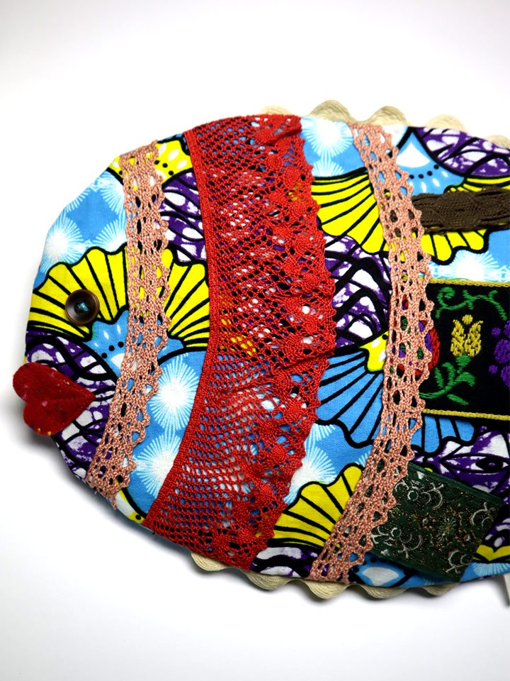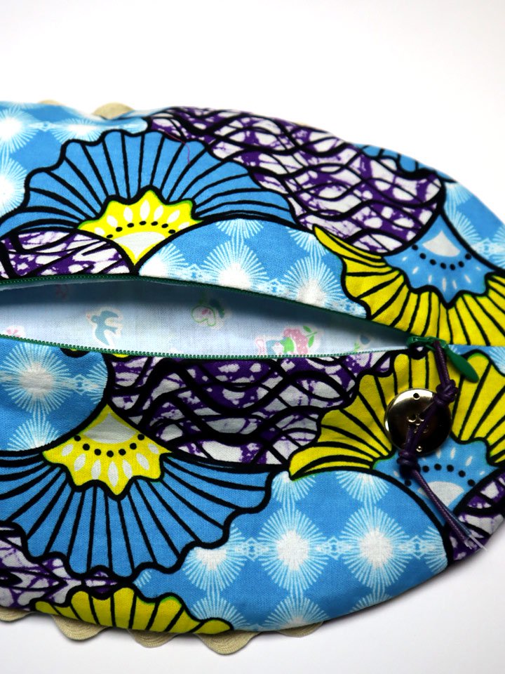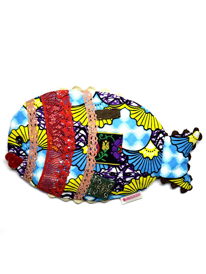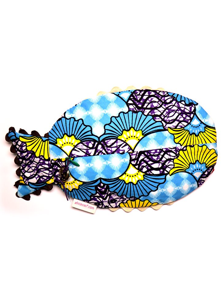 アフリカンプリントのお魚ポーチ・ブルー×ペタル