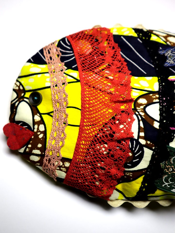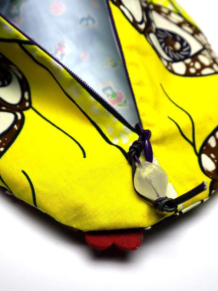 瞳にはボタンを使い、唇はハートのフェルトで愛嬌のある表情に仕上げました。