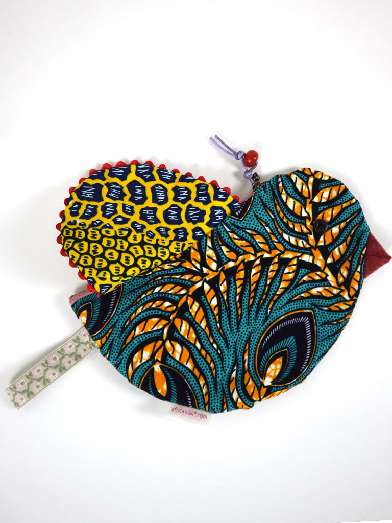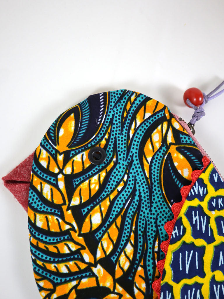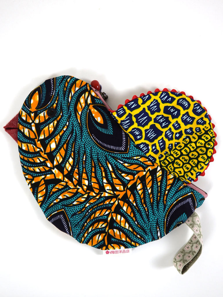 西アフリカのプリント布で作った鳥の形のポーチです。