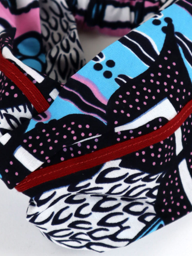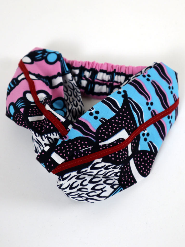 アフリカンプリントのクロスターバン・ブルー×ピンク