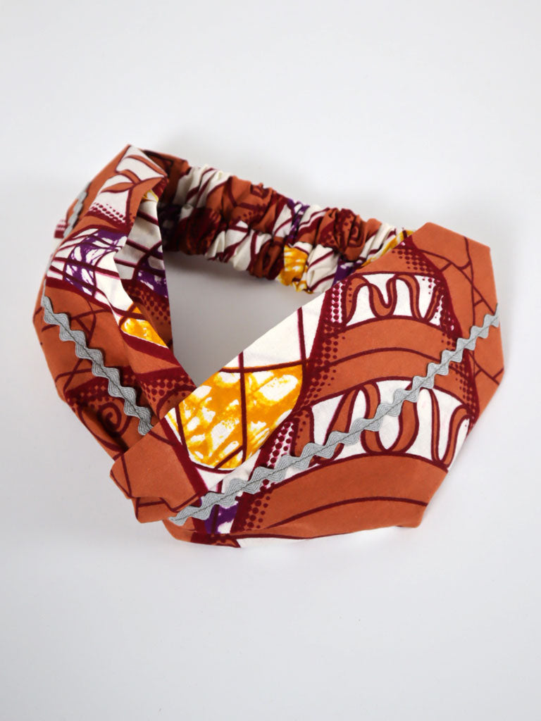 アフリカンプリントのクロスターバン・ブラウン