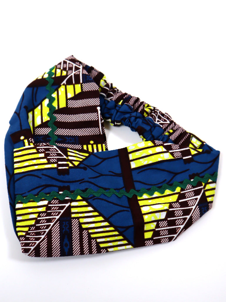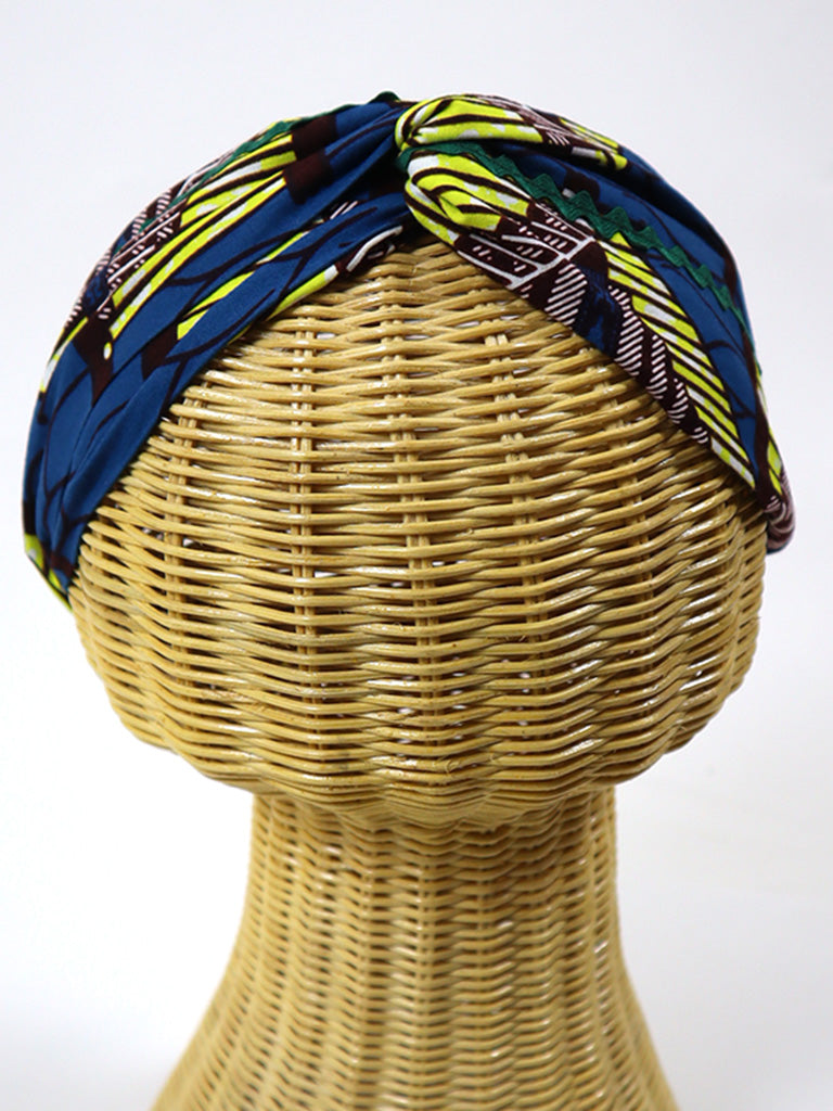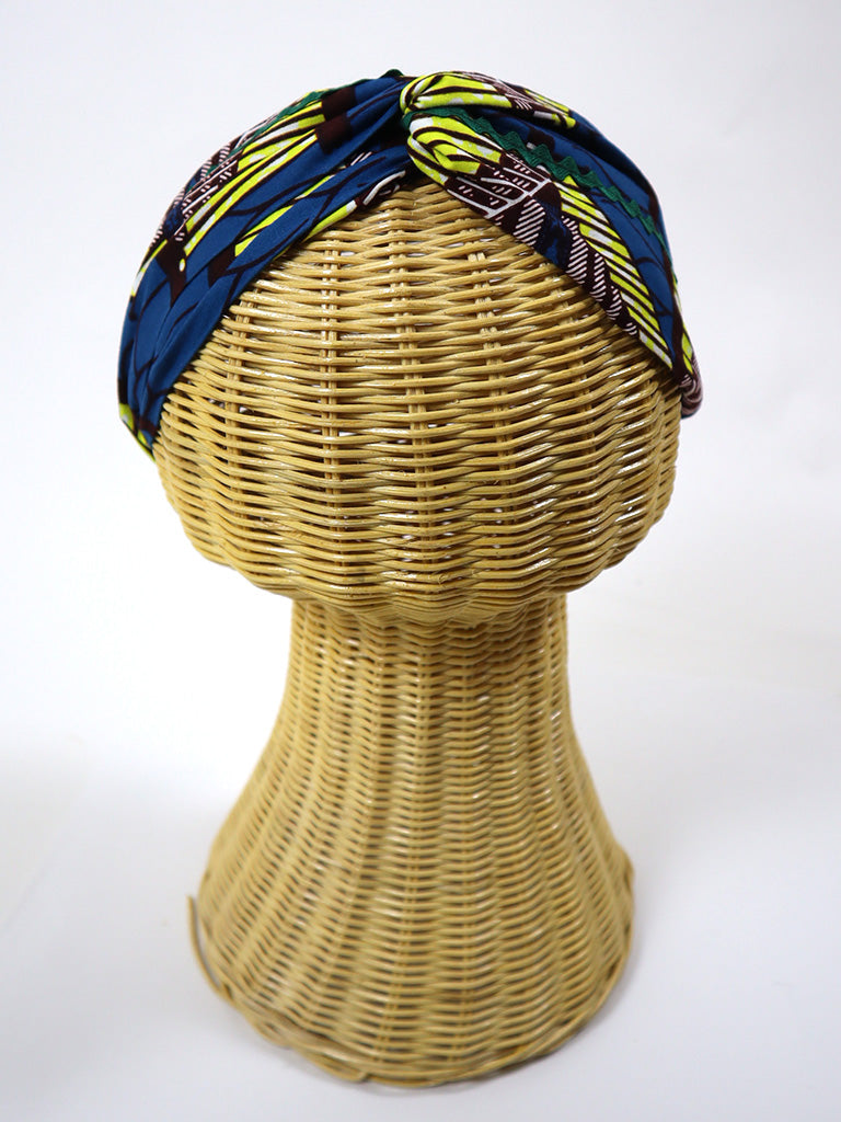 アフリカンプリントのクロスターバン・ブルー×イエロー