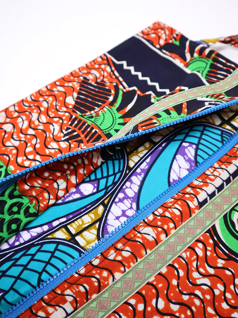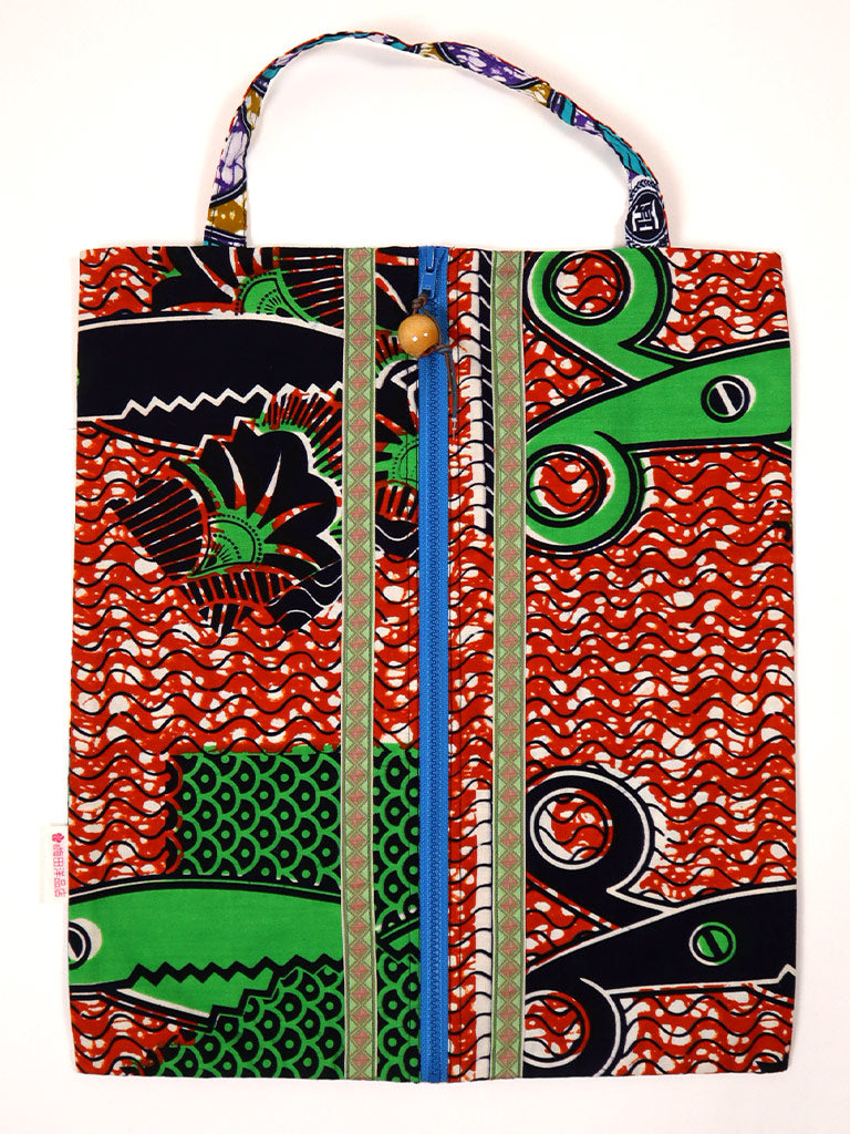 表裏別柄の着替え入れバッグ・レッド×シザー
