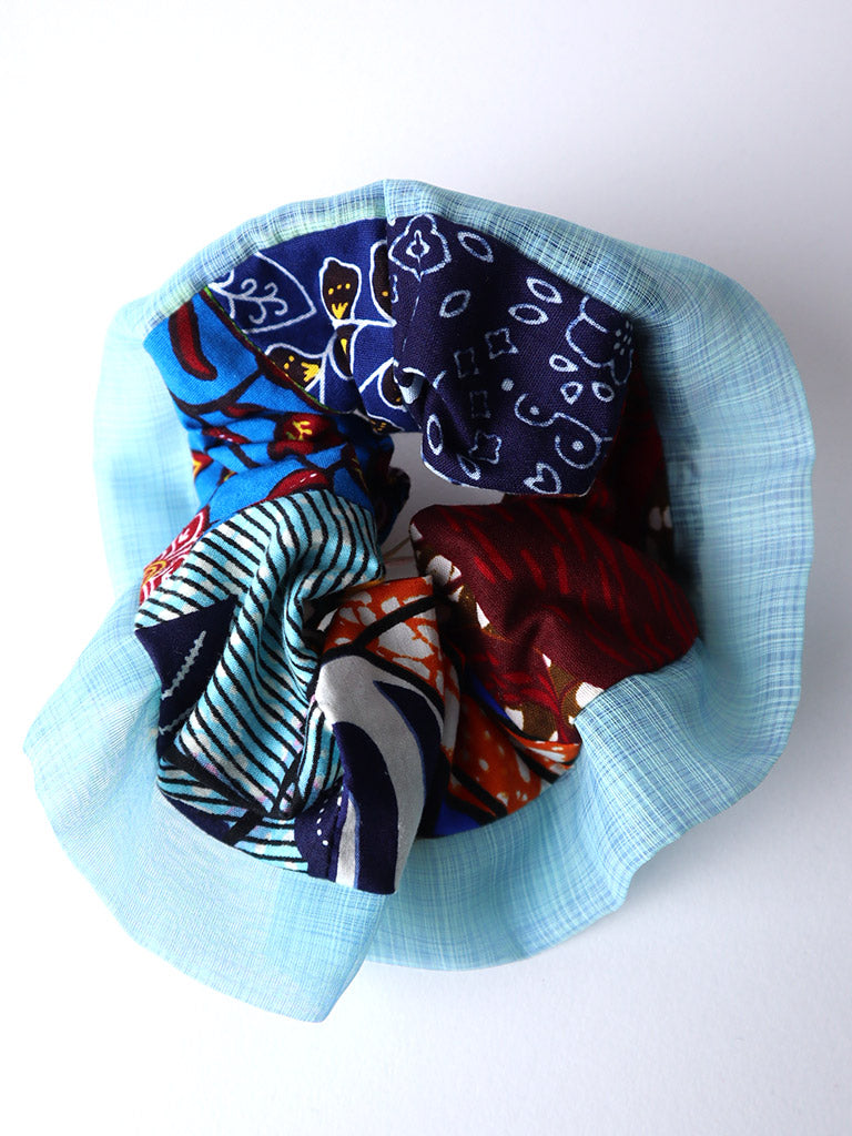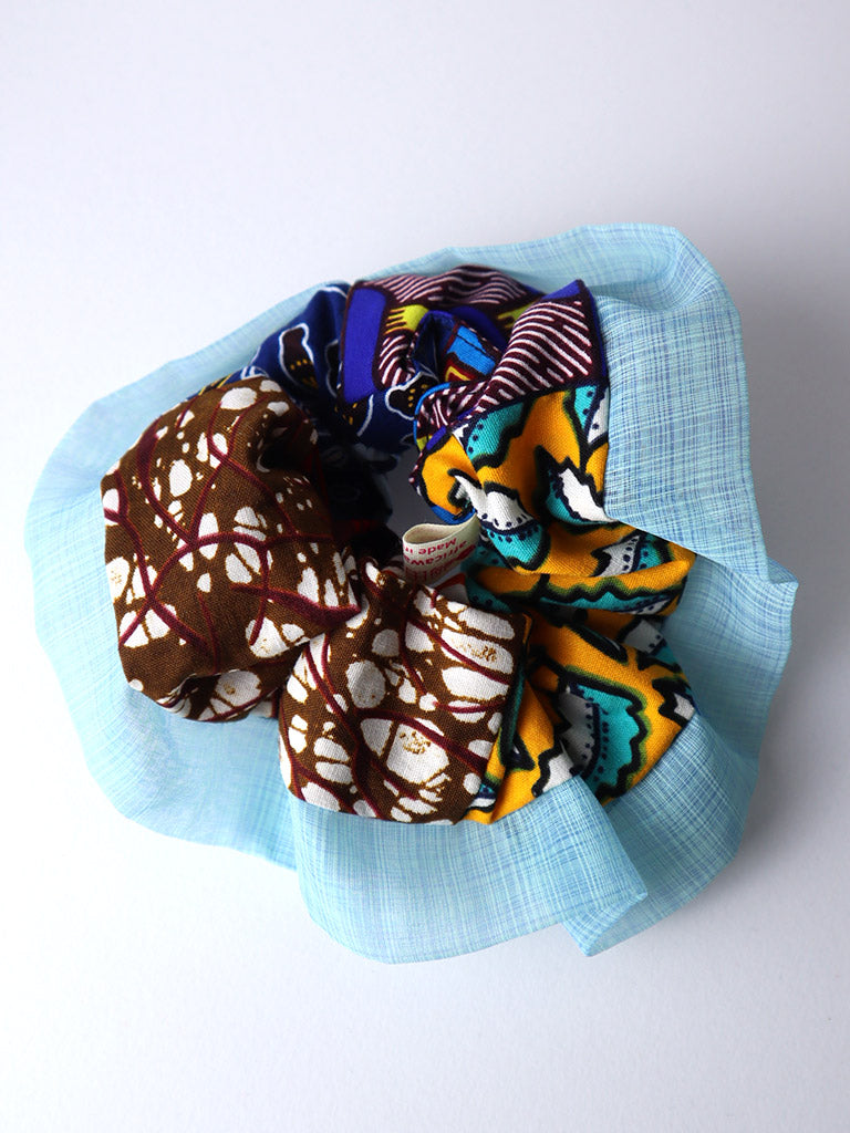アフリカンプリントをパッチワークし、シュシュを作りました。