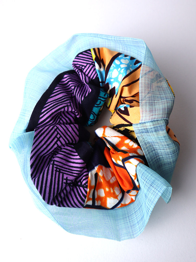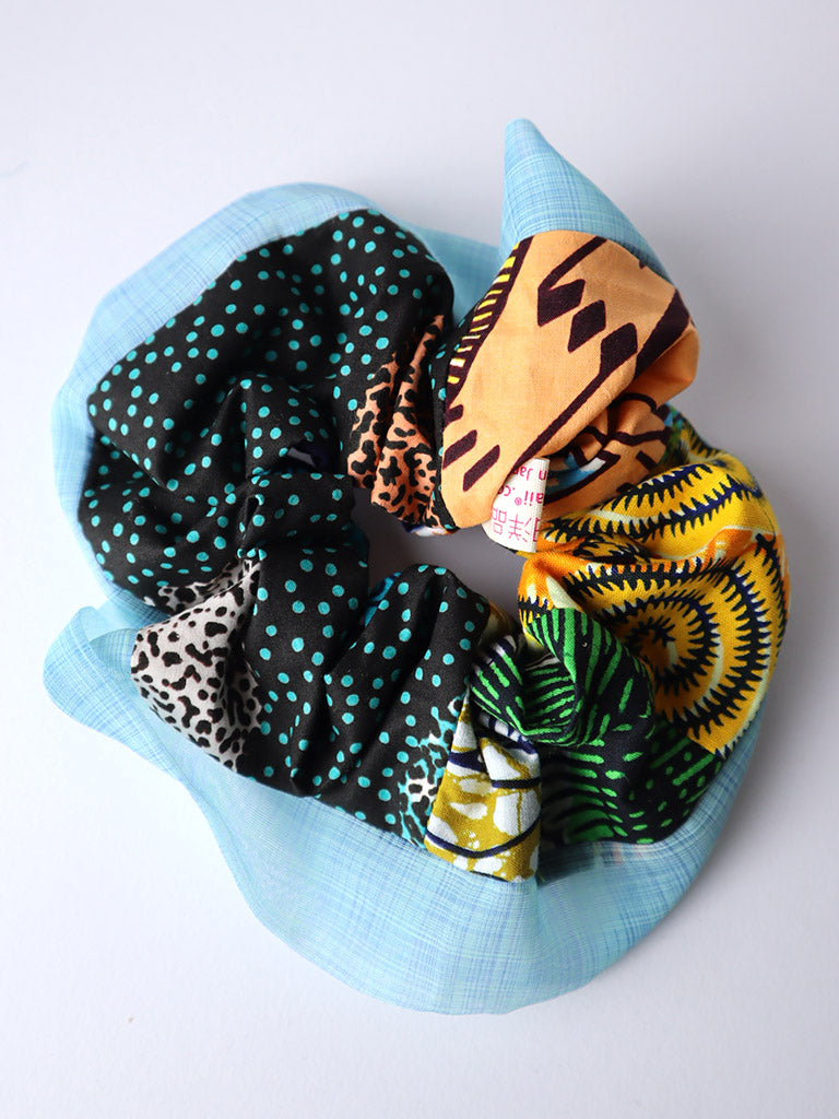 アフリカンプリントをパッチワークし、シュシュを作りました。