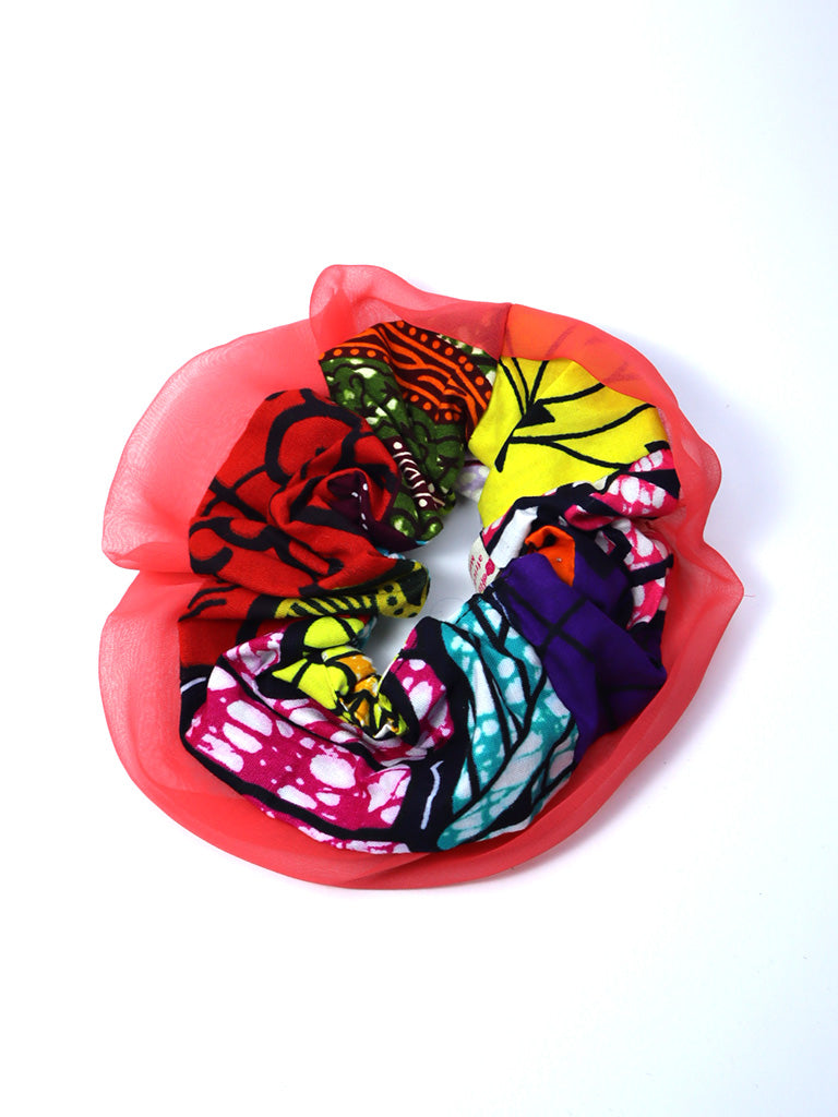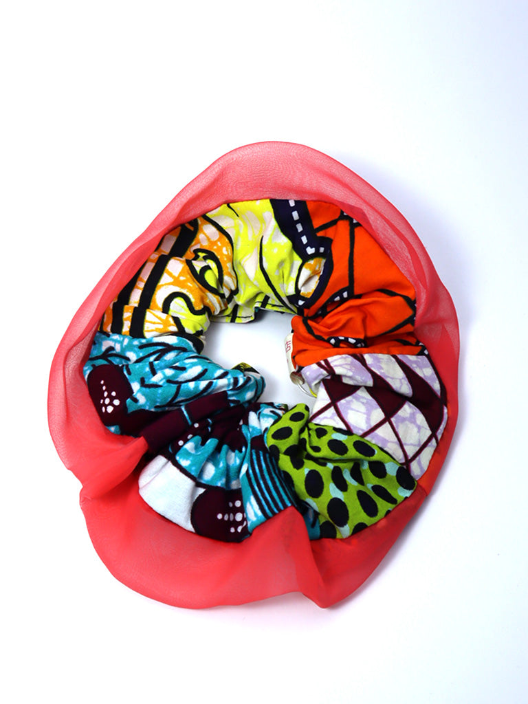 アフリカンプリントをパッチワークし、シュシュを作りました。