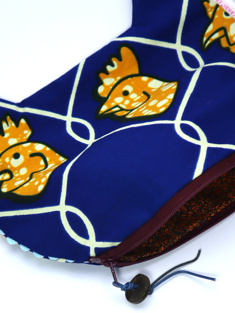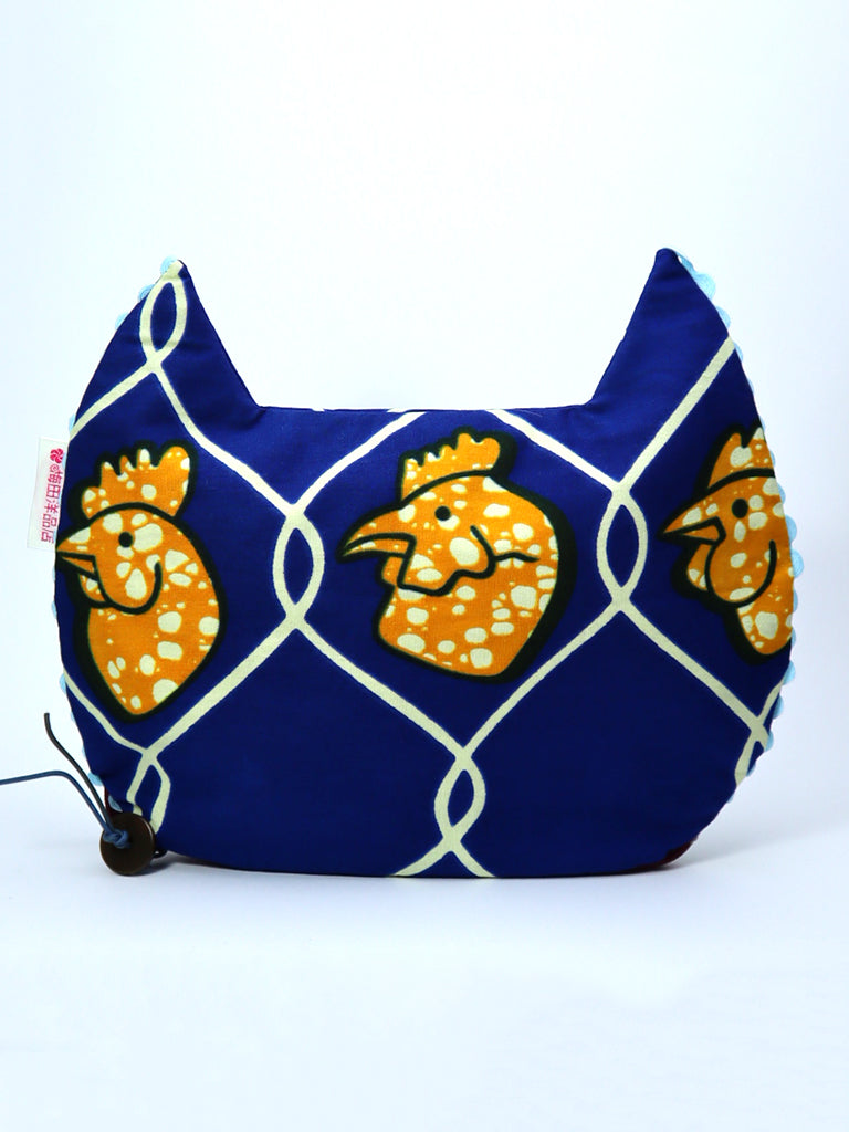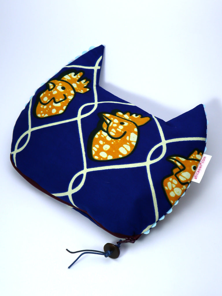 アフリカンプリントのキャットポーチ・ブルー×オレンジチキン