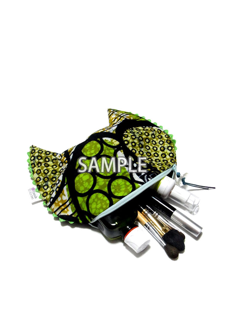 西アフリカのプリント布で作った猫の顔の形のポーチです。