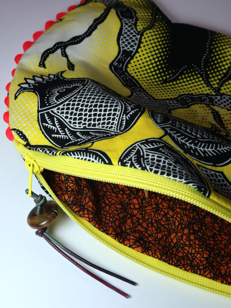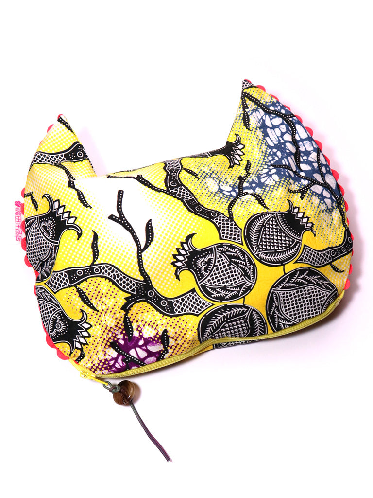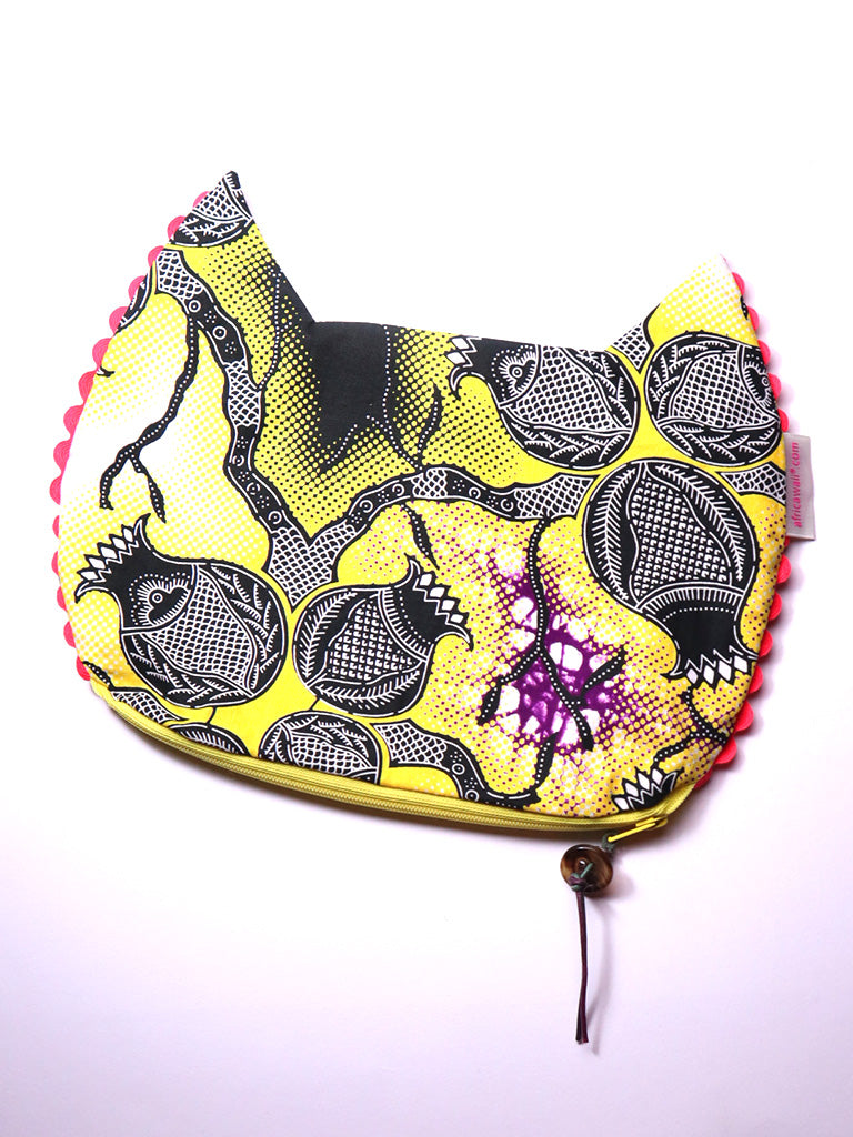 アフリカンプリントのキャットポーチ・イエロー×ベリー