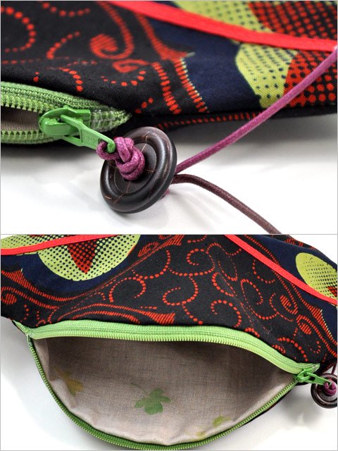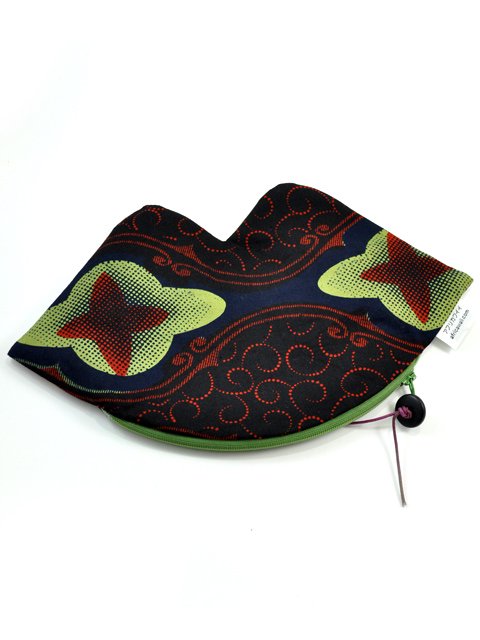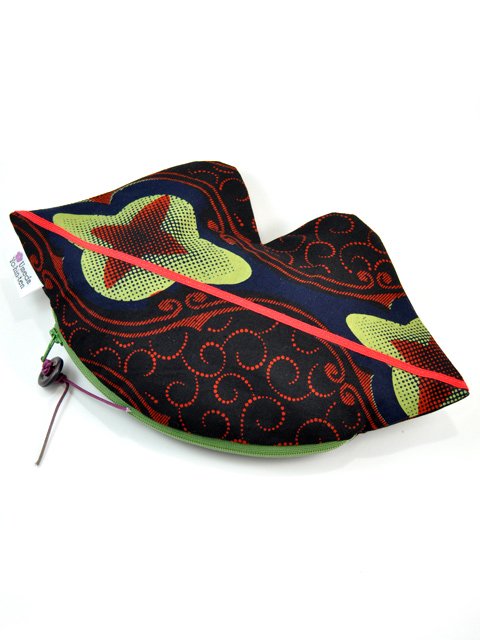 西アフリカのプリント布で作った「くちびる」の形のポーチです。